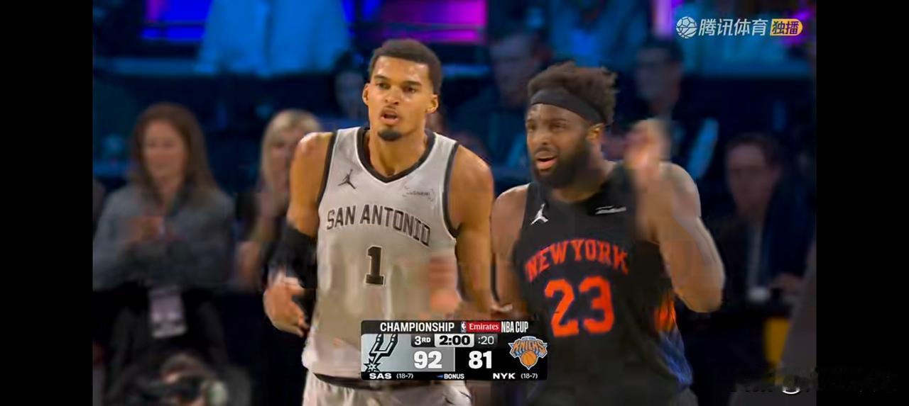 尼克斯获得队史第一个总冠军!马刺113比124不敌尼克斯! 依靠文班亚马第三节单节12分!吹响马刺拉开比分的号角!马刺带着5分的领先进入决胜第四节! 第四节依靠克拉克森连续2记三分,尼克斯一波8比0,打停了马刺!尼克斯将比分反超! 马刺突然的断电,尼克斯的控场能力出色,马刺再也没有机会扳回来! 尼克斯:阿努诺比28分9板!布伦森25分8助攻!唐斯16分11板!克拉克森15分! 马刺队:福克斯16分9助攻!卡斯尔15分7板12助攻!哈珀21分7板!文班亚马18分6板!