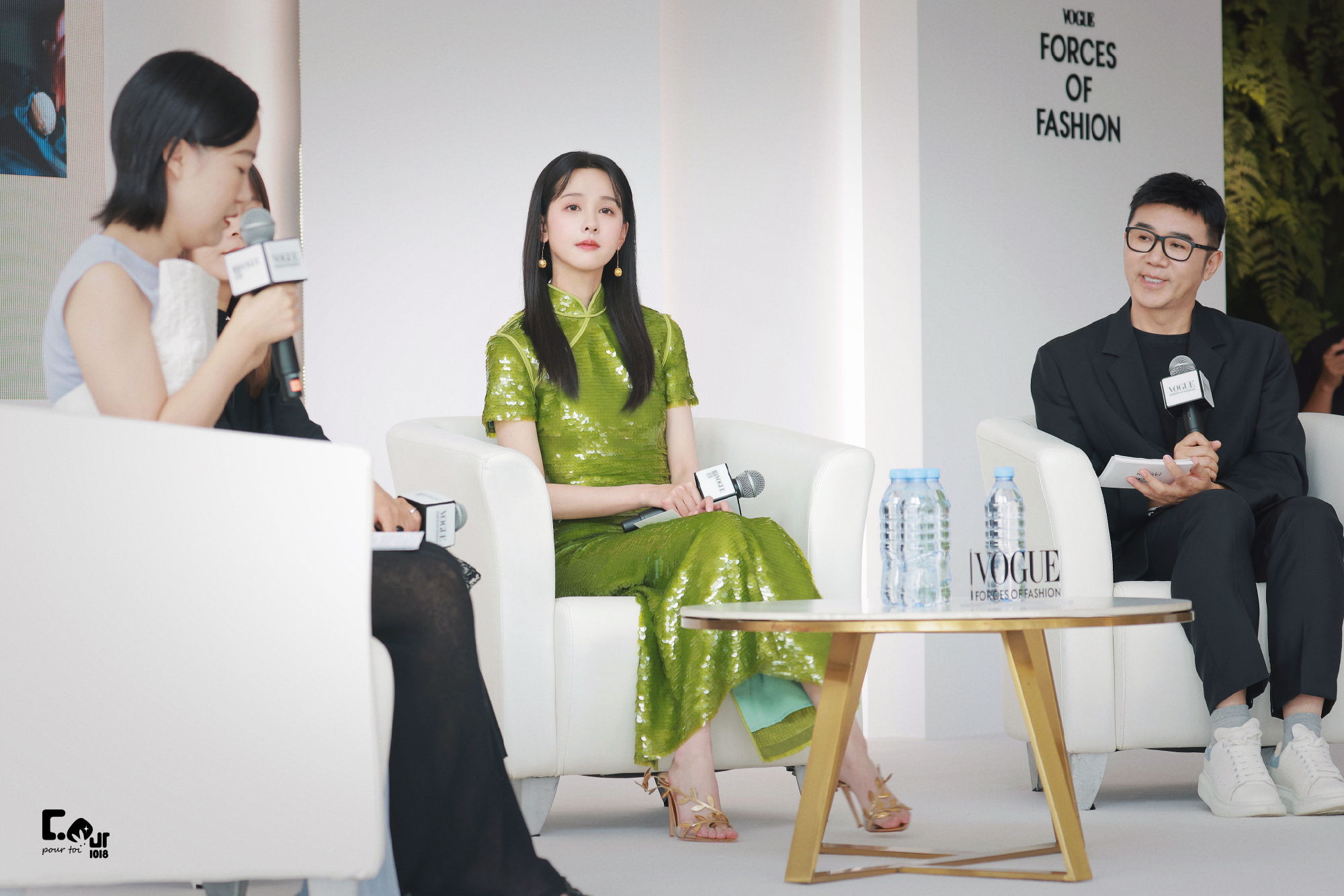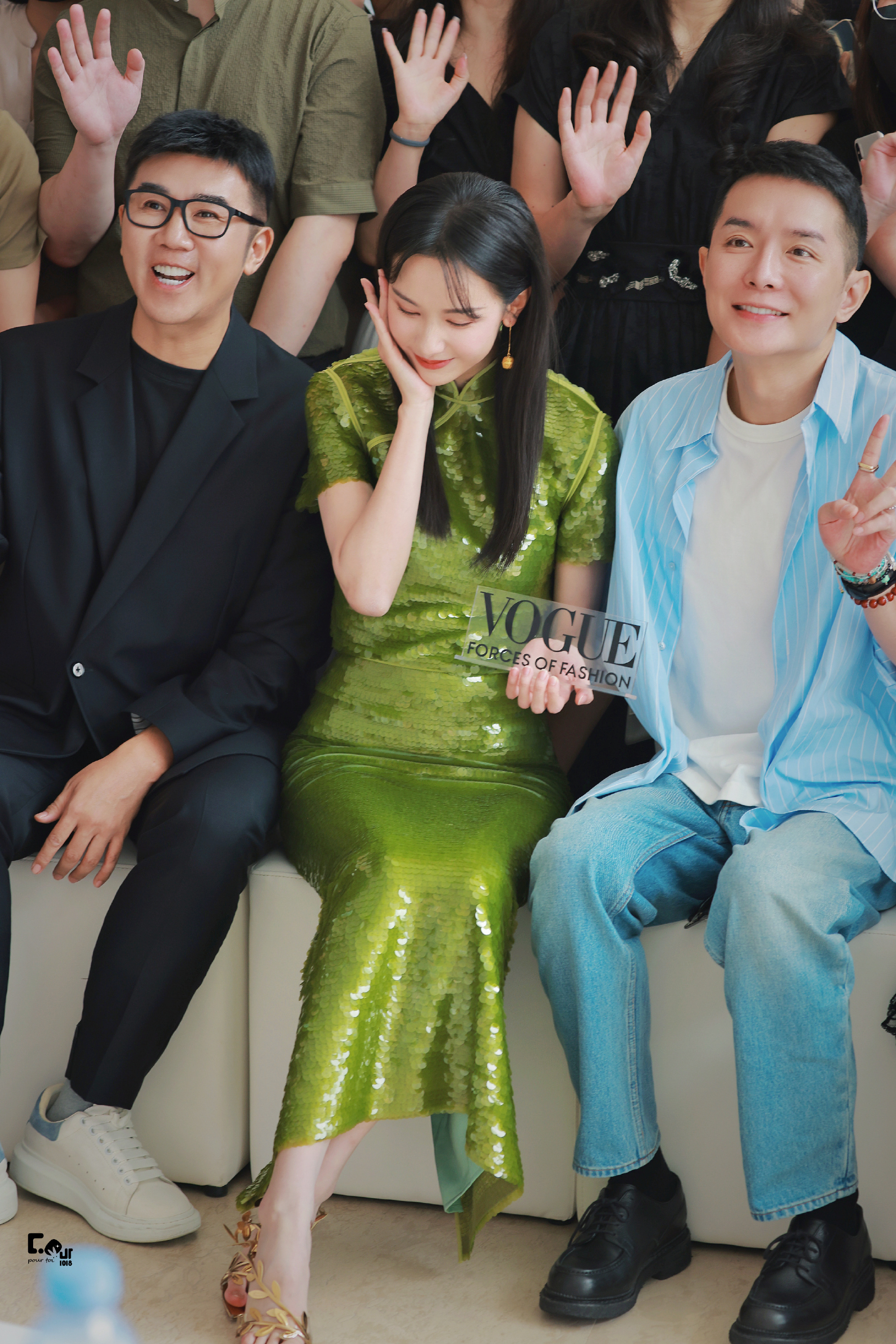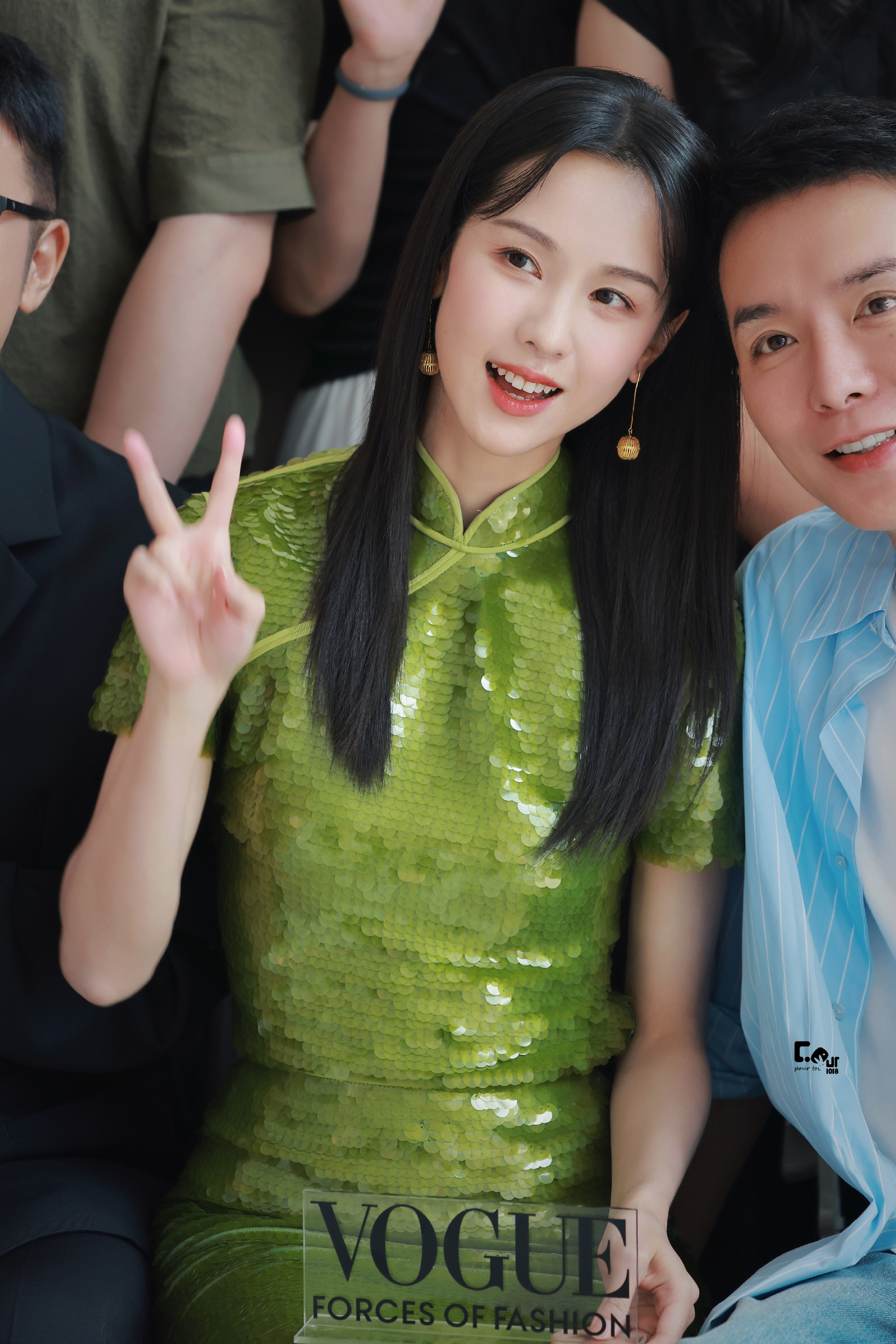 陈都灵绿色国风旗袍,嘟嘟这一身穿搭超美。陈都灵