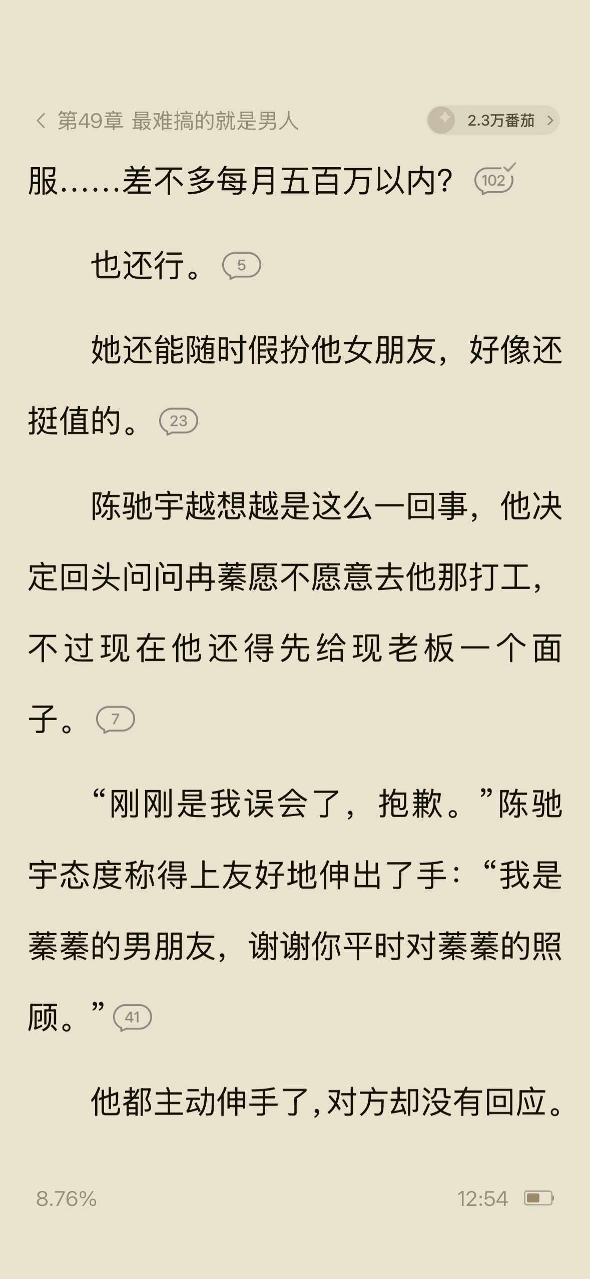 讲真的,我很想去演两个月啊,就两个月,打两份工。一份做秦老板月薪30w的女佣,也就晚上九点在门口迎接老板拿一下外套凌晨五点起床给老板准备要穿的衣服和咖啡送老板出门后就能休息了,另一份给陈老板做协议女友陪他演演戏单次20w,看陈老板的想法是做长期的月薪500w呢。我去演两个月就够了,以后都能躺平了