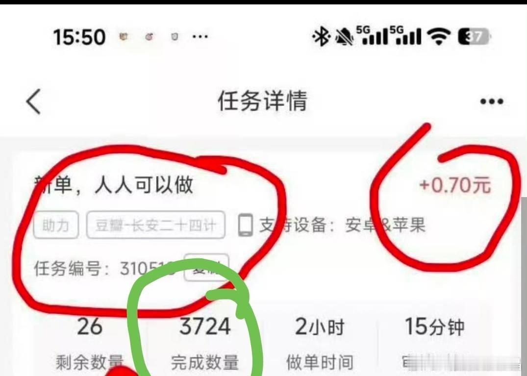 24计豆瓣打分任务在兼职app上已经有3700多个人接单了