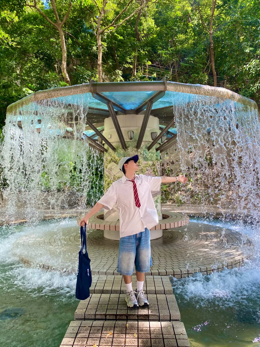 九龙公园紫色喷泉很出片,好像在国外的感觉