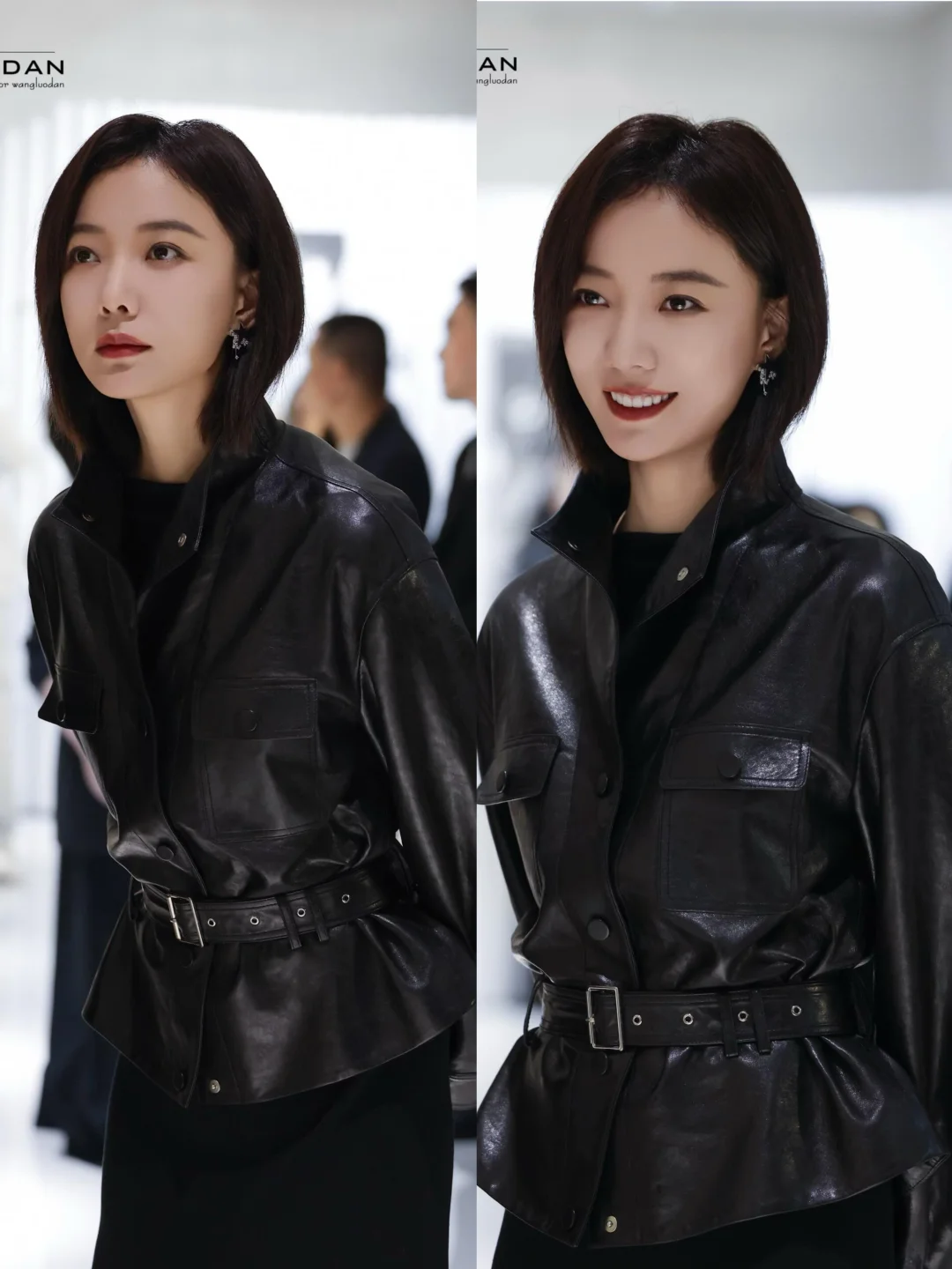 王珞丹的私服品味真的从没掉线!近期这套all black穿搭真的好爱——酷飒黑色皮衣混搭同色系轻薄长裙,把帅气和柔美的平衡拿捏得刚刚好,自带松弛随性的氛围。一抹红唇更是点睛之笔,不用刻意凹造型就气场拉满,妥妥的日常穿搭教科书! 明星不止AB面 王珞丹 女明星私服 图源 水印 侵权删