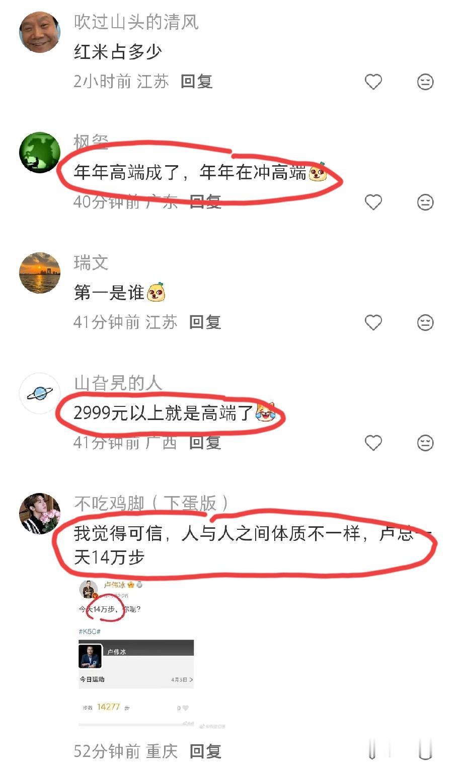 那个卢十瓦在华为被美国人的极限制裁限制的时候,不是发微博说华为的5000w高端用户都投靠了渣米,为什么在华为被制裁的时候,渣米的财报连续好多年手机都是均价格是1000多左右,那到底是谁在说谎呢?是渣米的财报说谎,还是卢十瓦在说谎?