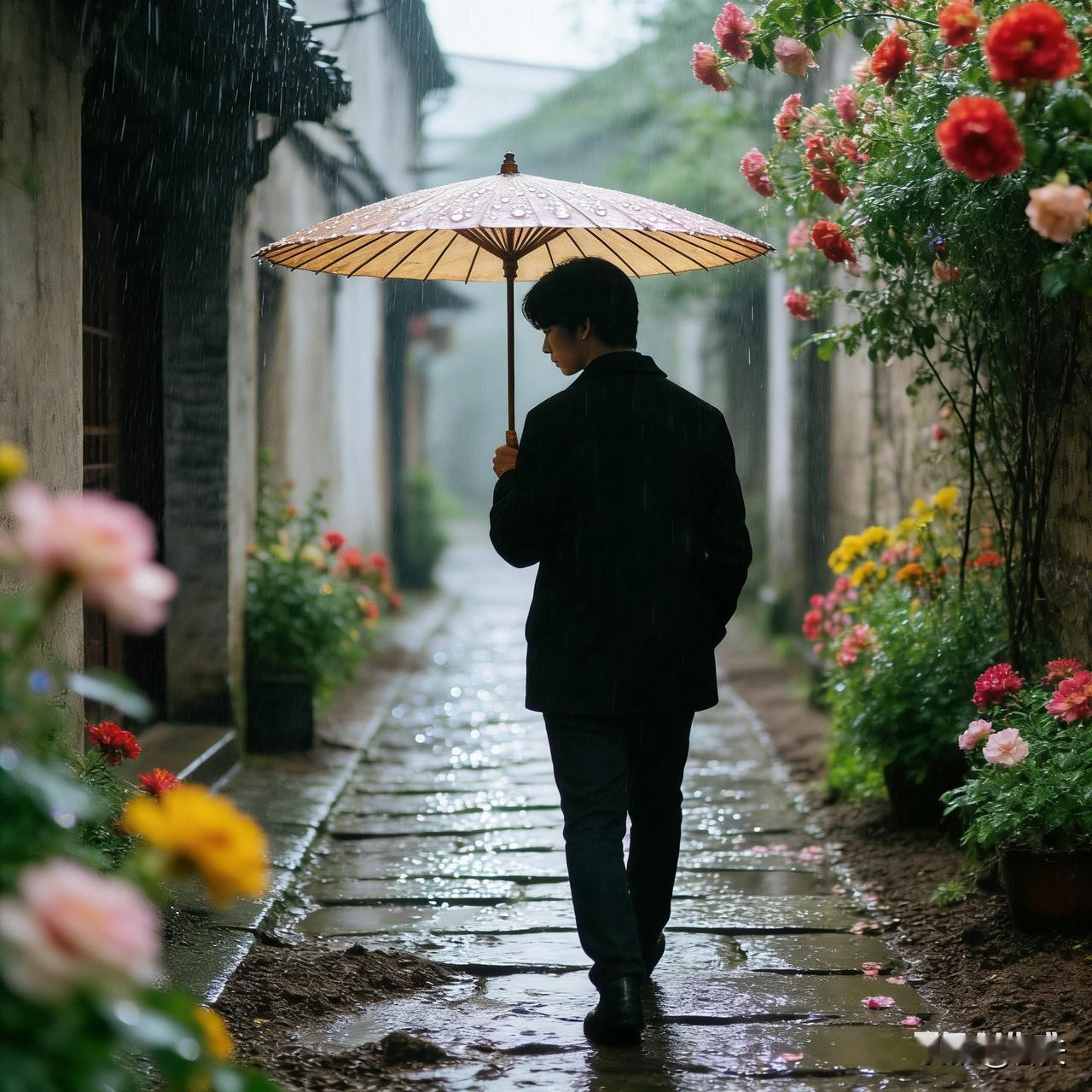 雨中小景 雨丝沙沙落不停,石板小路亮晶晶。淅沥雨声里,巷陌被洗得清透,青石板路映着天光,像铺了层碎银。路边花儿擎着露珠,月季艳红、茉莉素白,层层花瓣裹着雨珠,争相展露鲜嫩姿色,恰似撑着小伞的精灵在比美。 风携清香绕阶行,泥土的湿润混着花草芬芳,漫入鼻尖。偶尔传来几声蛙鸣,与雨声交织成趣。孩童踩着水洼奔跑,笑声清脆,溅起的水花沾湿衣角也不在意。这场慢悠悠的雨,把寻常巷陌变成了诗意画卷,每一处景致都藏着温柔与生机。