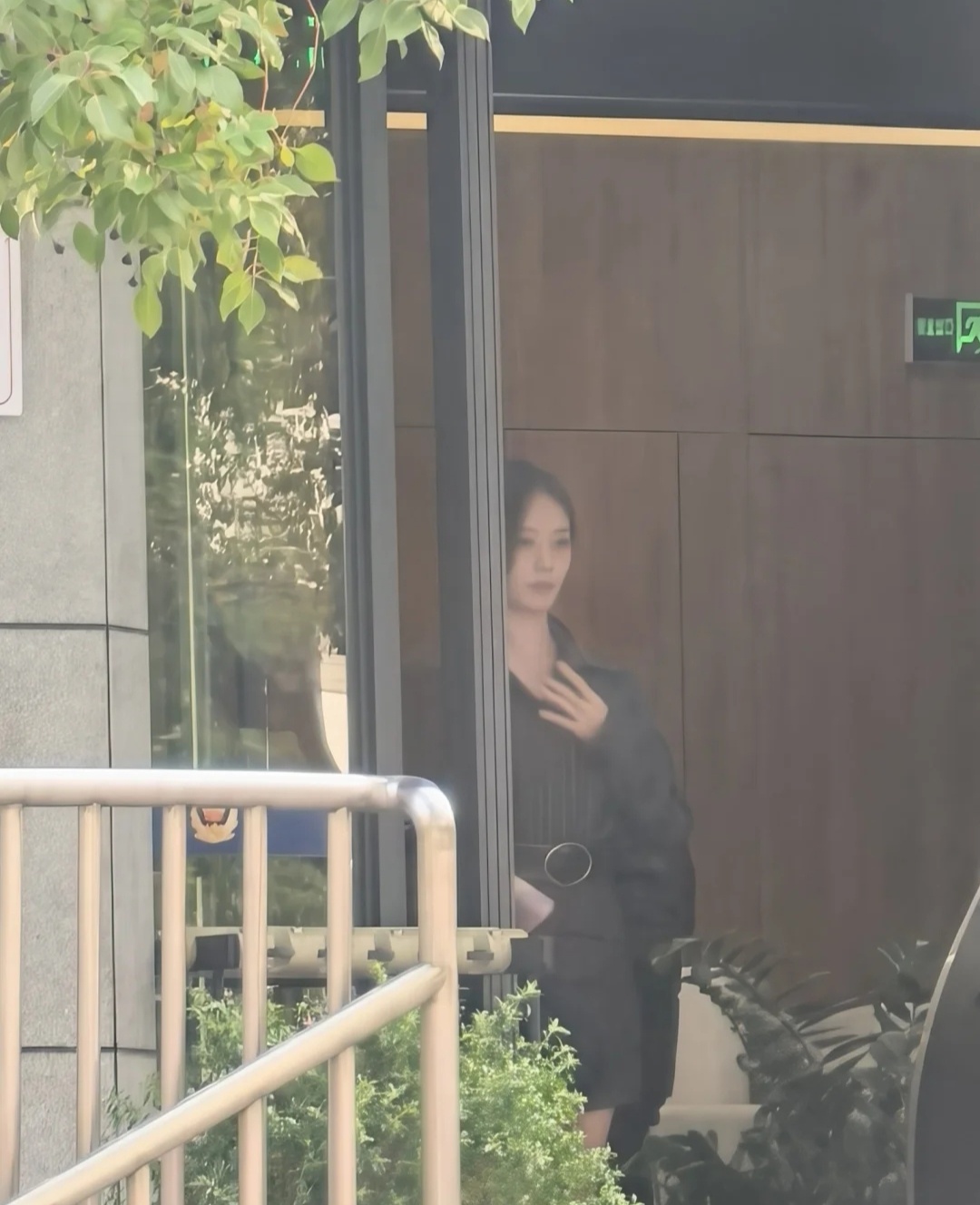 吴艳妮在成都穿着短裤大腿看起来很粗壮,表情自信又张扬