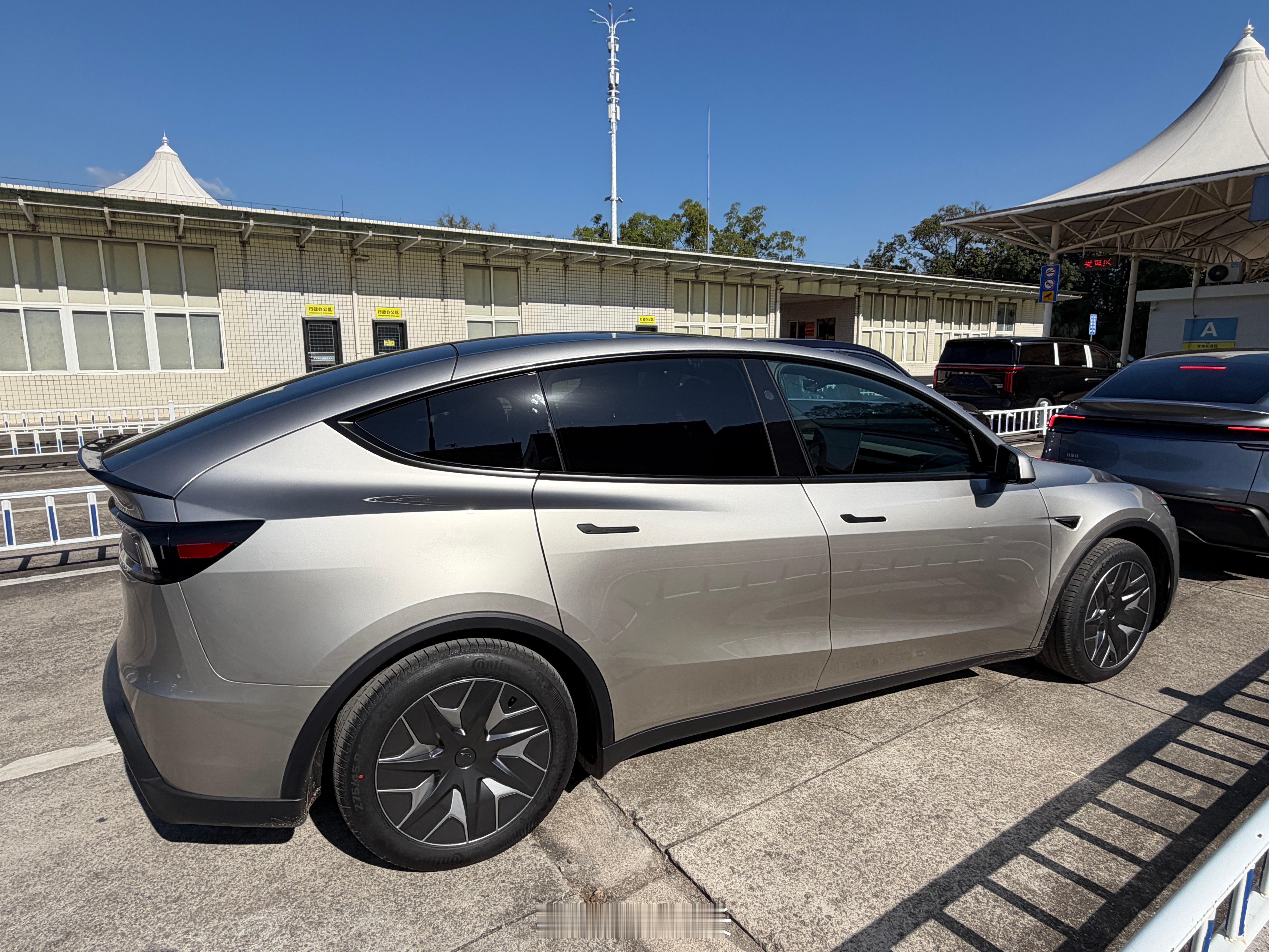 Model Y L,肉眼可见比标轴的体量要大,买来第三排带宠物挺好