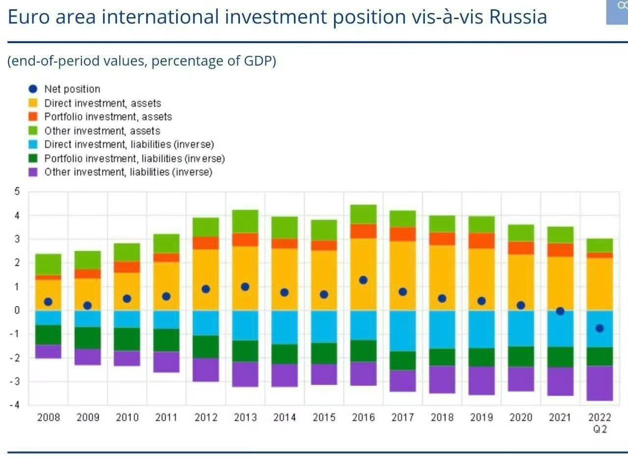 俄罗斯不怕欧盟没收冻结在欧洲的俄罗斯国有资产的底气就在这张表里面,因为自2022年起, 欧洲在俄罗斯的投资根本出不了俄罗斯。 截至2022年初, 俄罗斯境内滞留了4380亿欧元的欧洲资本,其中包括2760亿欧元对工厂和银行的直接投资、830亿欧元信贷以及700亿欧元的股票和债券投资,这些投资在最近三年间里逃出俄罗斯的资金不到10%,包括出售业务收回200亿欧元, 另有100亿欧元是2022年初证券被冻结前的相关交易,真要互殴起来,俄罗斯还能挣1000亿欧元。