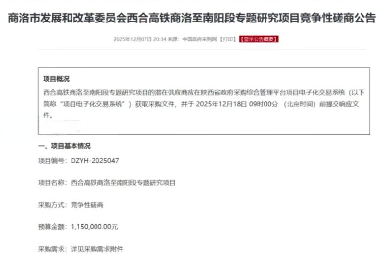 商洛市发布的西合高铁商洛至南阳段专题研究项目公告,是否预示着这条铁路有望纳入十五五规划!线路全长约275公里,设计时速350KM/h,起点于商洛西站,途经丹凤县、商南县、西峡县、淅川县、内乡县、镇平县、最终到达南阳东站。12月7日商洛市发布的西合高铁商洛至南阳段专题研究项目公告,说明该项目已进入研究阶段,有望纳入十五五规划。待西合高铁商南段建成后,商洛最快1个小时便可到达南阳了。那么,此条线路有经过你的家乡吗!豫西高铁