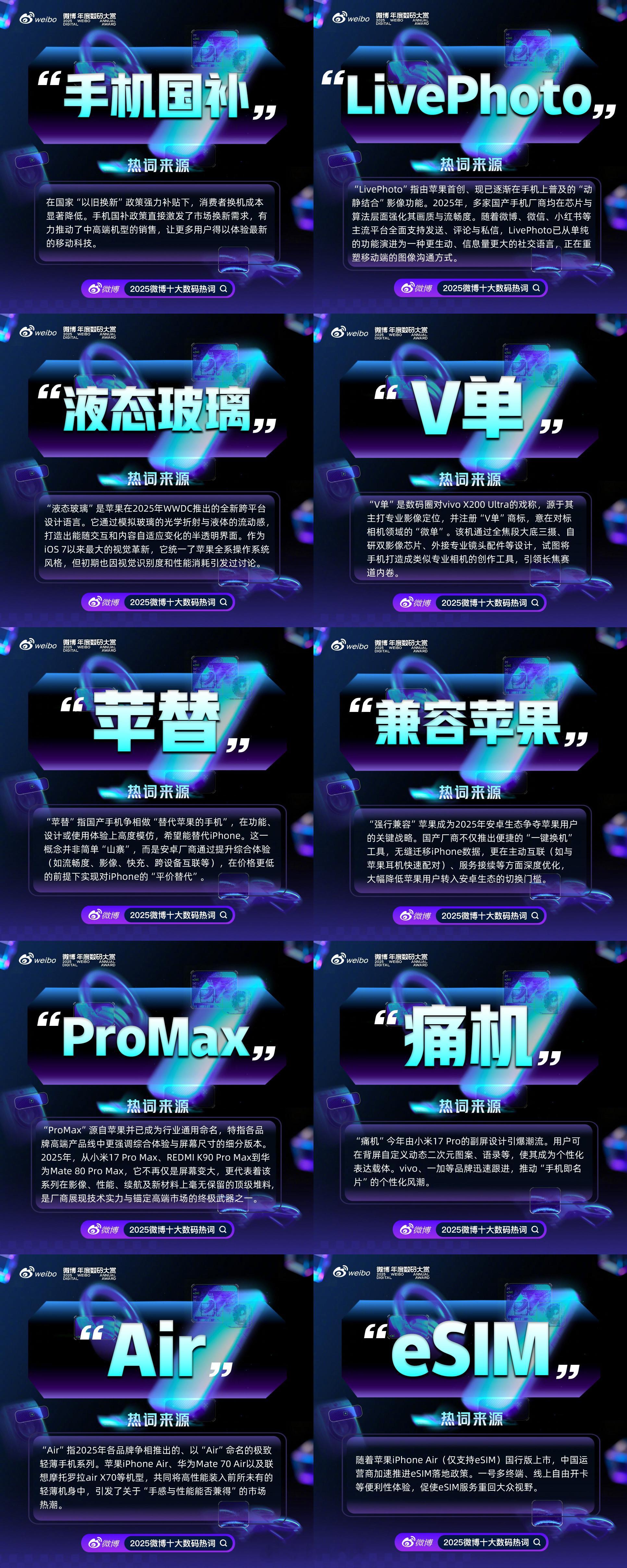 微博数码整理的2025微博十大数码热词出来了:手机国补、Air、LivePho