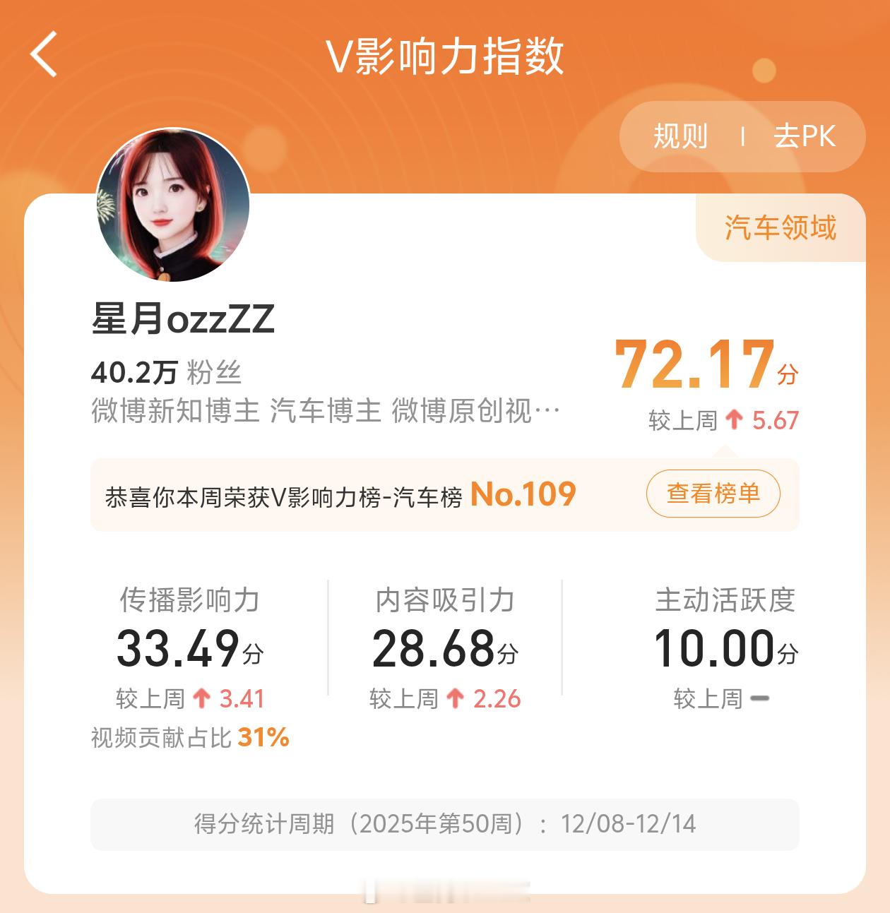 禁言了一批博主的效果立竿见影嘛,我的V影响力榜第109了……大v聊车