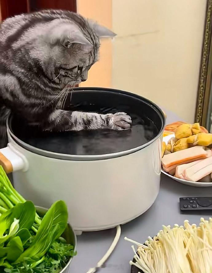 这只猫咪有一百个心眼子,因为平常总是被狗狗欺负,又打不过它。看到主人放在桌子上的