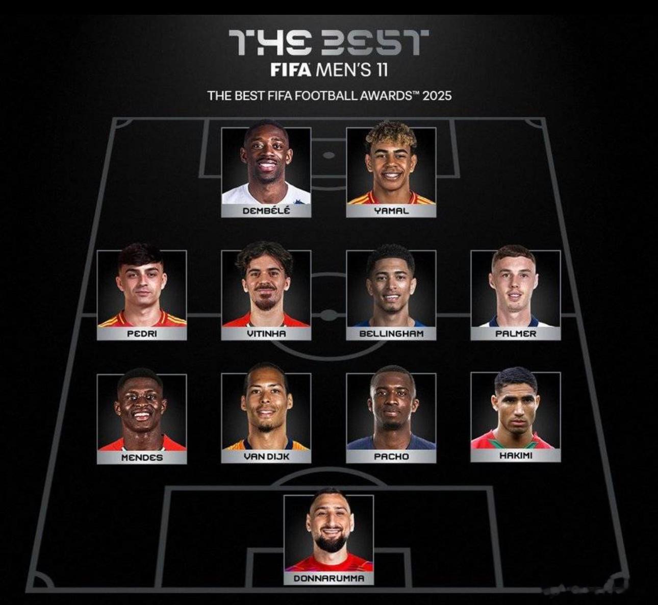 12月17日讯 在今日凌晨结束的2025年度最佳颁奖典礼上,公布了2025年度男足最佳阵容,金球奖&世界最佳球员得主登贝莱领衔巴黎圣日耳曼共计6人入选,亚马尔、帕尔默、贝林厄姆、佩德里、范戴克等其他五人在列。在最佳阵容公布后引发了网络不少热议,其中皇马前锋姆巴佩,根据现场转播画面,他在缺席最佳阵容后,依旧进入了年度最佳球员“最终三人”候选(登贝莱、亚马尔、姆巴佩),也就是意味着年度最佳球员候选三人仅姆巴佩一人无缘。此外,巴萨前锋拉菲尼亚在评选周期内的2024/25赛季,代表巴萨各项赛事出场57次,其中53场首发,贡献了34球22助攻的数据,同时随队斩获三冠王的荣誉,但依旧无缘最佳阵容。巴萨巴萨亚马尔