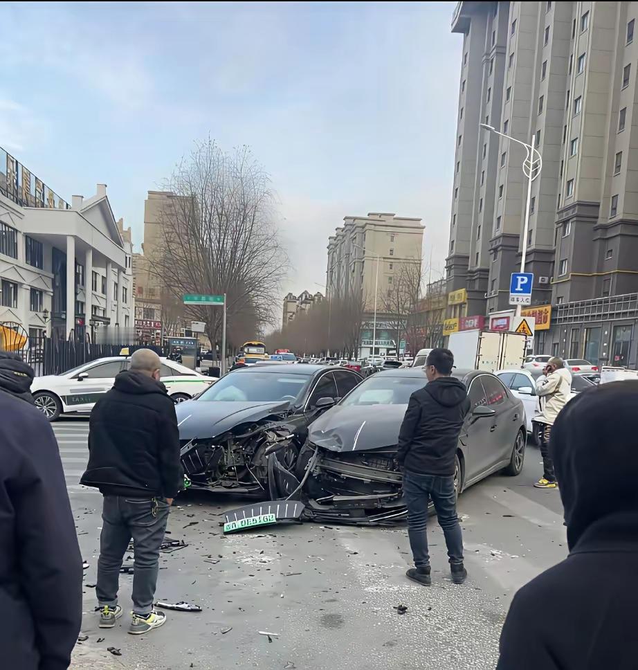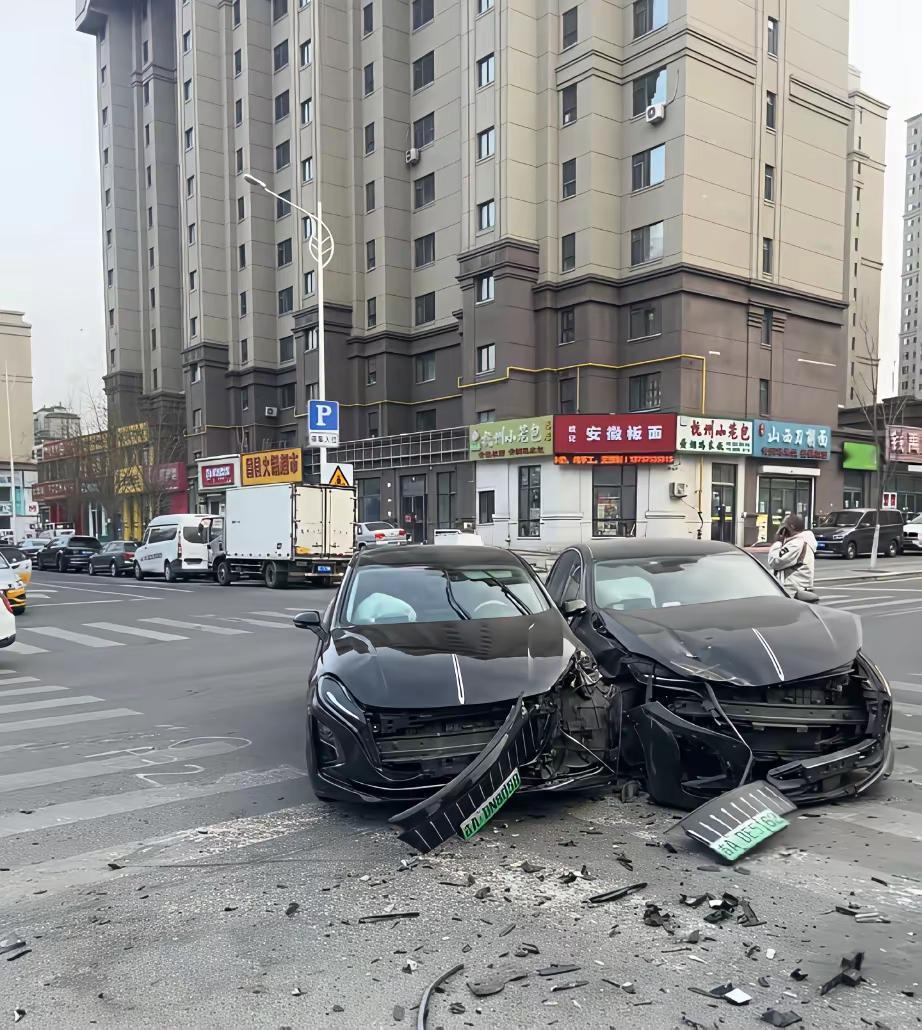 两辆红旗牌新能源汽车相撞,不是正面撞的,而是侧面撞的,但是两辆车的前脸全都掉了,惨像环生。可见这个车太不结实了,如果是正面撞那不是更惨