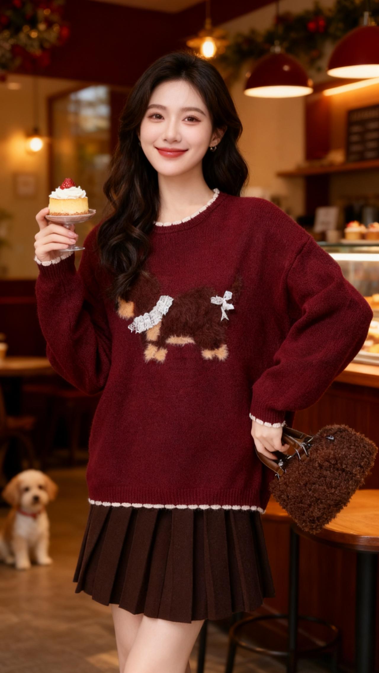 温柔穿搭 冬款穿搭 新年穿搭 毛衣 红色