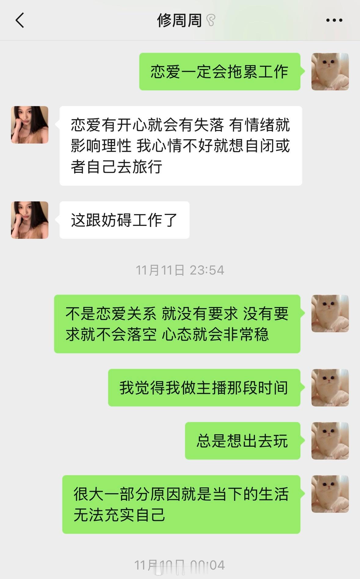 需要能和我deeptalk的人 爱情友情都一样 偶尔深入的对话能让我感到平静 原来世界上还有另一个人懂自己 每次和小周周聊完都会觉得又有力量了