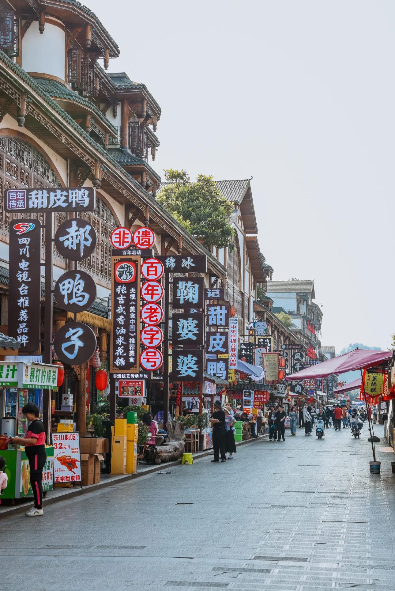 看这密密麻麻的招牌,就知道苏稽古镇一定是一座好吃的古镇,反正身边的朋友没事就要去一次个人比较推荐这几种跷脚牛肉:汤底醇厚,打底菜可以是芹菜也可以是白菜,看个人喜欢,一定要先喝纯汤,很多药膳香料熬制,非常好喝。徐凉糕:手工米凉糕+翻砂红糖,价格便宜,特别是这个红糖很有特色,不是红糖水是糖浆,很有特色,一定要品尝。米花糖:现做现卖,酥脆不粘牙,伴手礼首选豆腐脑+咔饼:这是本地人爱吃的早餐,推荐牛肉加酥肉豆腐脑,两种搭配更上头。川派网红乐山行藏满流量密码我心向往乐山乐山