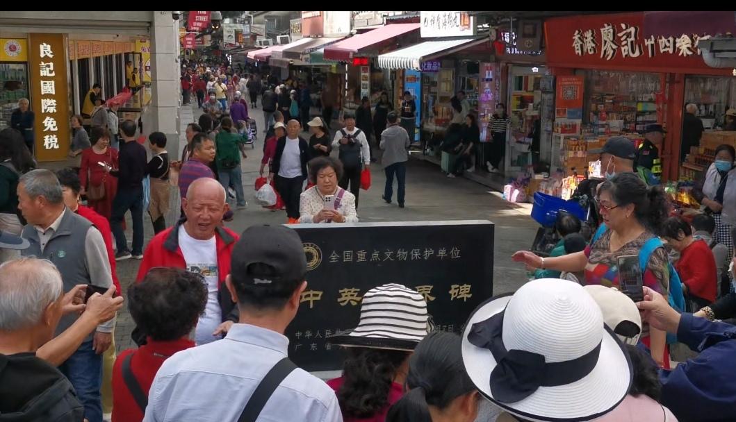 2025年年末广东游之六:—— 中英街上感受一国两制 记者王志俭(穿石)文图 广州逛了三天后,觉得珠海、深圳近在咫尺,不游玩一下确实可惜,于是又报了珠海、深圳三日游。 今天来个倒叙,(珠海游在前)先说一下在深圳逛中英街的感受。没去中英街前觉得那里很神秘,内心充满好奇和期待。 17日上午10时许,大巴车停靠在中英街深圳这边,进入中英街前换了导游。导游是一名30多岁的女导游,身材高挑长相秀气。她在一间屋里给游客们讲了半个多小时的“课”。 从如何进关到出关,买什么产品不买什么产品,中英街上那家商铺东西可靠,香港商店买货不讲价等等。女导游一手夹着烟一边滔滔不绝的介绍,她的语速特别快说的虽是普通话,,但不仔细听还真听不明白。 随着熙熙攘攘的游客团队进入中英街,首先映入眼帘的是一块黑色石碑,上面刻着中英街三个黄色大字。游客们蜂拥上前拍照留念,速度慢的人甭想拍上照片。 让人奇怪的是中英街深圳一边是高层建筑,商店铺面装潢时尚漂亮。反观香港一侧都是低矮房屋,商铺装修随意陈旧。这让我想起刚才女导游的话,进了中英街高层建筑这边是深圳,低矮房子那边才是香港。当时心里有些纳闷,看到眼前景象才知道说的是实情。 中英街长约250米,宽约3至4米。该街道位于中国广东省深圳市盐田区沙头角街道与香港特别行政区北区交界处,以界碑为界,深港各占一半。由于街道狭窄加之游人如织,使得街道显得拥挤和且更加狭窄。导游讲中英街“水客”(带外货的人)颇多,千万不可贪小便宜吃大亏。 不过我逛街时没发现“水客”,或许“水客”高峰在下午不得而知,但我没遇到一个“水客”。(也许不认“货”)该街只有250米如果东西买的少,10几分钟就逛完了。团里许多人随导游走进香港一方一家商店,这家店有金银饰品、香烟、药品、食品等等商品。 团里许多人都买了东西,两手大包小包的拎着。听导游介绍,一国两制前中英街上有条铁链,将香港和大陆隔开,两方警察各自在界内巡逻,有时遇到一起会相互握手。 要说逛了中英街有啥感受,那就是神秘感被打消了。