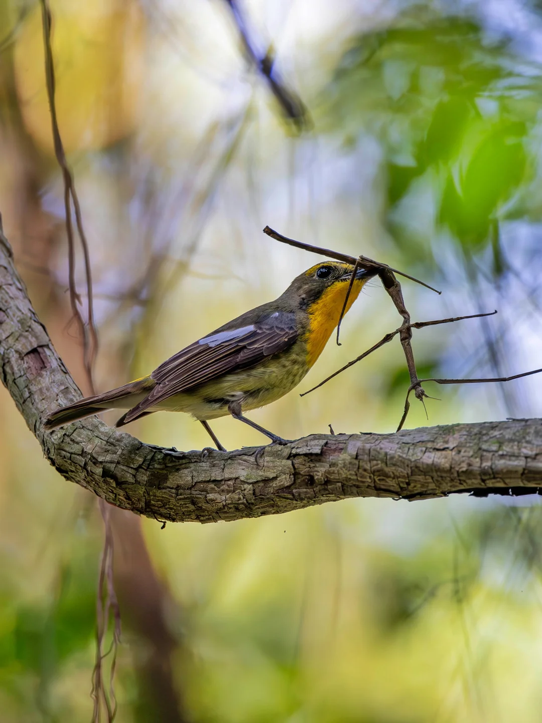 琉球姬鹟在我国算是少见了,前两天在广州中山大学发现一只迁徙过境的雄鸟,没想到这两天在深圳笔架山也发现了一只,还是深圳市的新纪录,瞬间成为了鸟友们的热门,大家蜂拥而至,一睹其风采。当然他也不负众望,大方出现,现在深圳鸟友人手一张啦。非常幸运还看到了他抓一只竹节虫,竹节虫比他全身都长啊,太精彩了。