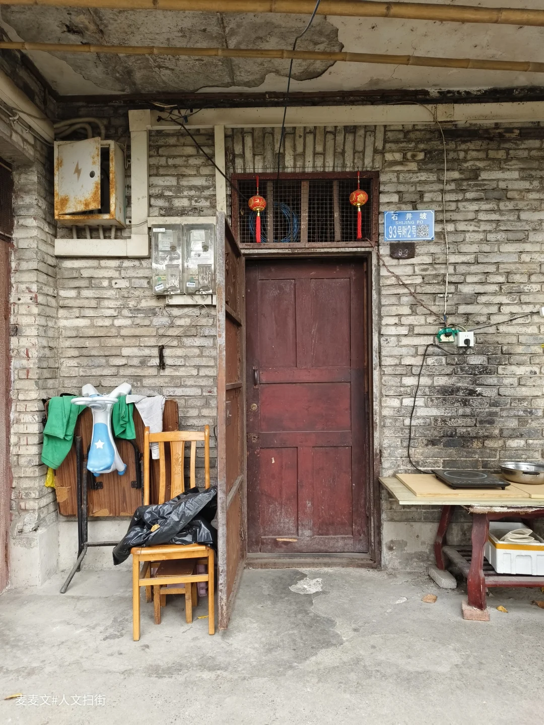 然而,当我穿过那些被镜头反复抚摸的彩色立面,向石井坡的深处走去时,却意外闯入了一个更为静默的世界。这里的房子依然保持着最原始的样貌:青灰色的砖块严丝合缝地堆砌,没有矫饰的色彩,没有刻意的修补,只有岁月自然留下的痕迹。这些老房子如同沉默的见证者,固执地保持着上世纪某个年代的记忆片段。