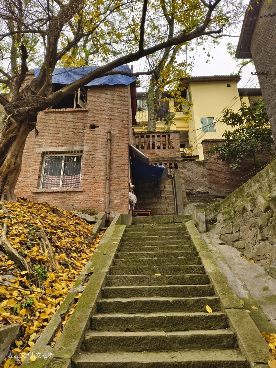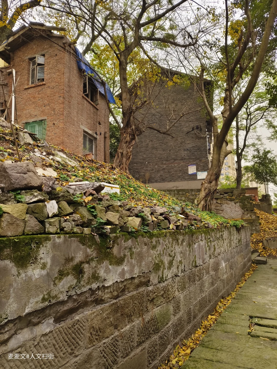 石井坡深处的青砖房,是未被网红经济洗礼的最后阵地。它们的墙面上没有刻意保留的"岁月感",因为每一道裂缝、每一块风化的砖石都是真实时间的刻度。这些房屋的建筑语言直接而朴素——厚重的砖墙承载着重庆冬冷夏热的极端气候,小而高的窗户设计是对旧时采光与通风需求的回应,错落有致的屋檐线条则勾勒出山城特有的空间逻辑。在这里,建筑不是用来拍照打卡的背景板,而是真正被居住、被生活、被时间慢慢雕琢的空间实体。