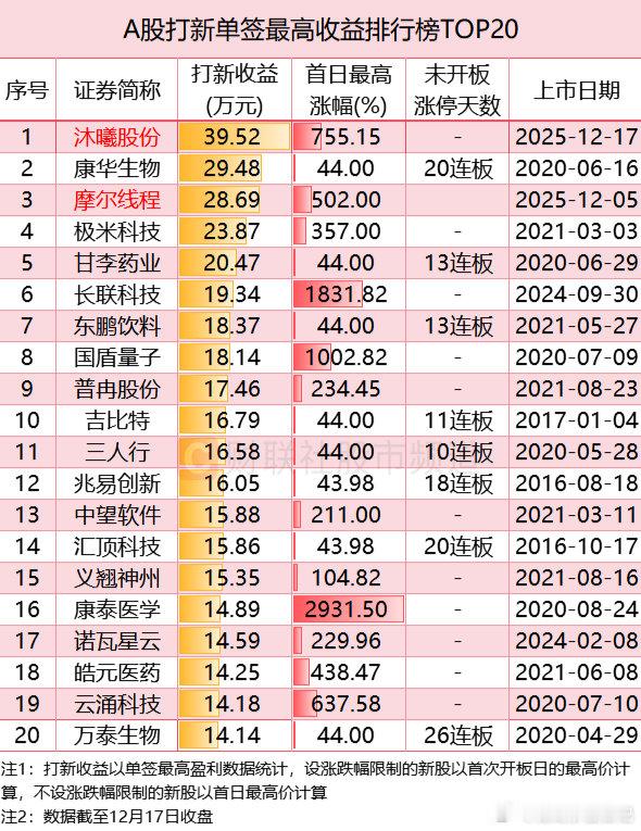 今日,沐曦股份正式登陆科创板,成为继摩尔线程后又一家上市的国产GPU龙头。首日上市,公司股价一路狂奔,收盘时涨幅高达692.95%,按单签500股计算,打新投资者首日盈利规模近36.26万元。若以盘中755.15%的最大涨幅测算,沐曦股份单签最大盈利达39.52万元。这两项数据不仅双双超越近期“大肉签”摩尔线程,同时也助力沐曦股份登顶A股史上“最赚钱新股”,成为首日单签盈利、单签最大盈利双纪录创造者。除了打新收益惊人外,沐曦股份今日股价也表现强势,收盘报于829.9元,在超过摩尔线程的同时成功跻身A股股价排行榜第三名,仅次于贵州茅台、寒武纪两只千元股,稳稳站在市场高价股头部核心位置。(财联社)股票关晓彤听分手歌100多遍鹿晗知道吗
