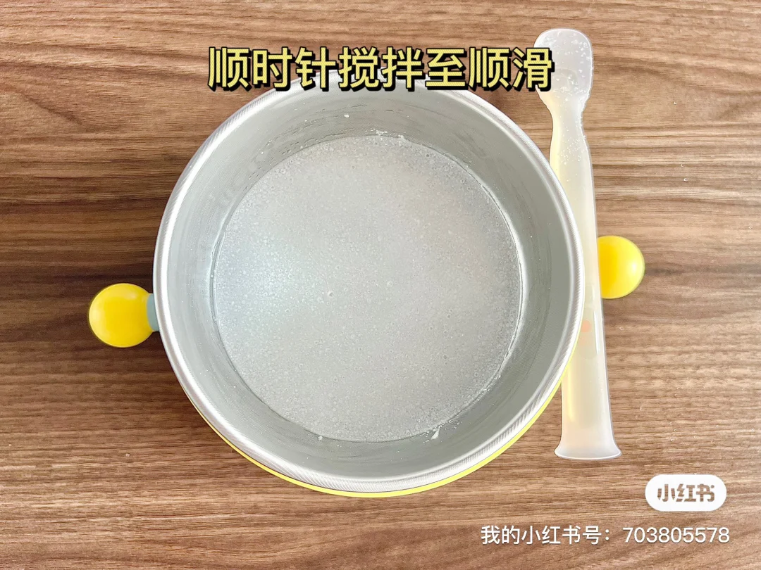 👧:5个月➕14天 🥣:原味高铁米粉 ⏰:中午12:30 📝:2.5g米粉加50ml水,冲完成水滴状💧 今天九点睡醒喝奶,就等到12:30才给加辅食,宝宝还是很配合,都吃完啦![偷笑R]吃完喝了点水助消化 ⚠️吃完辅食多少都喝一点水,可以助消化,净化口腔。