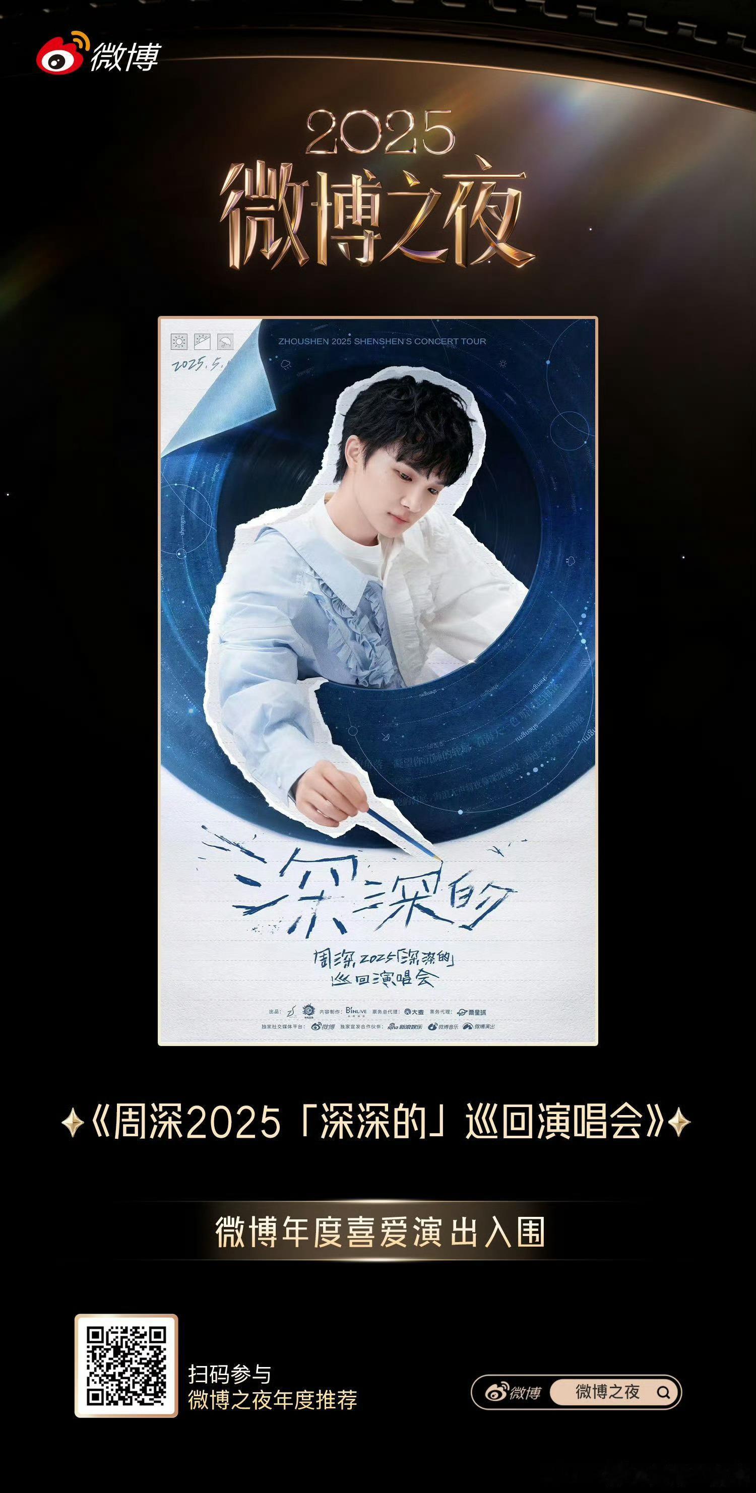 周深荣誉再++1,歌曲《来啊》入围微博网友年度喜爱音乐,2025「深深的」巡回演唱会入围微博网友年度喜爱演出!恭喜🎉