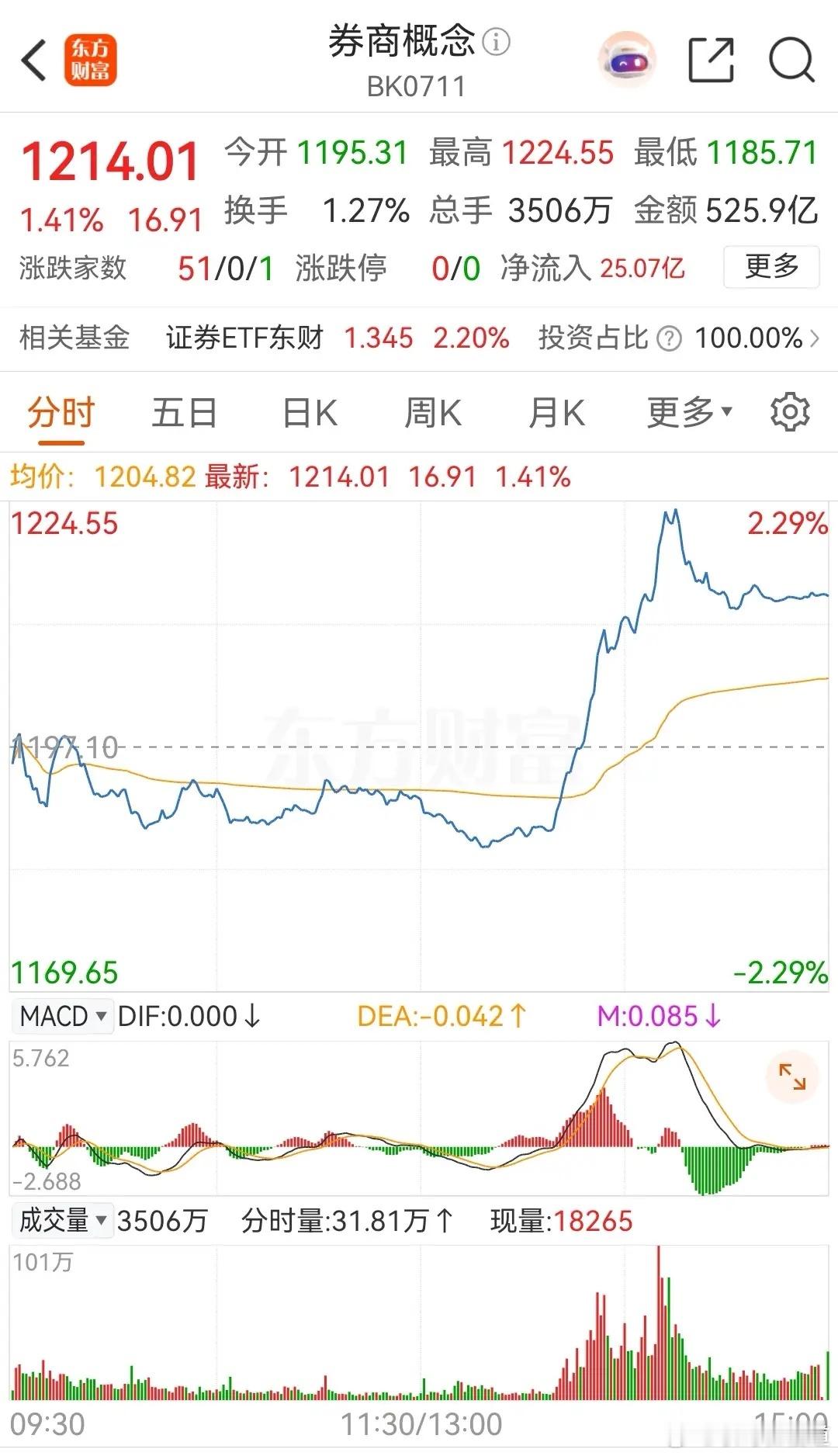 券商概念板块午后突然异动拉升,一举打破自12月08日跳空高开后的回踩盘整之势,收