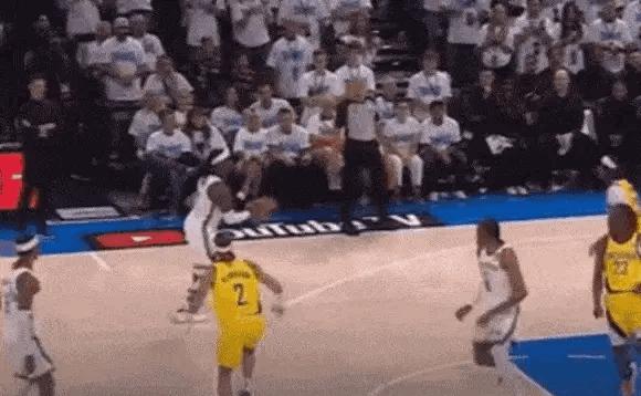 垫脚的那个,这次是进攻球员。 多尔特投三分时,刻意将右脚伸向了防守人的圆柱体下方
