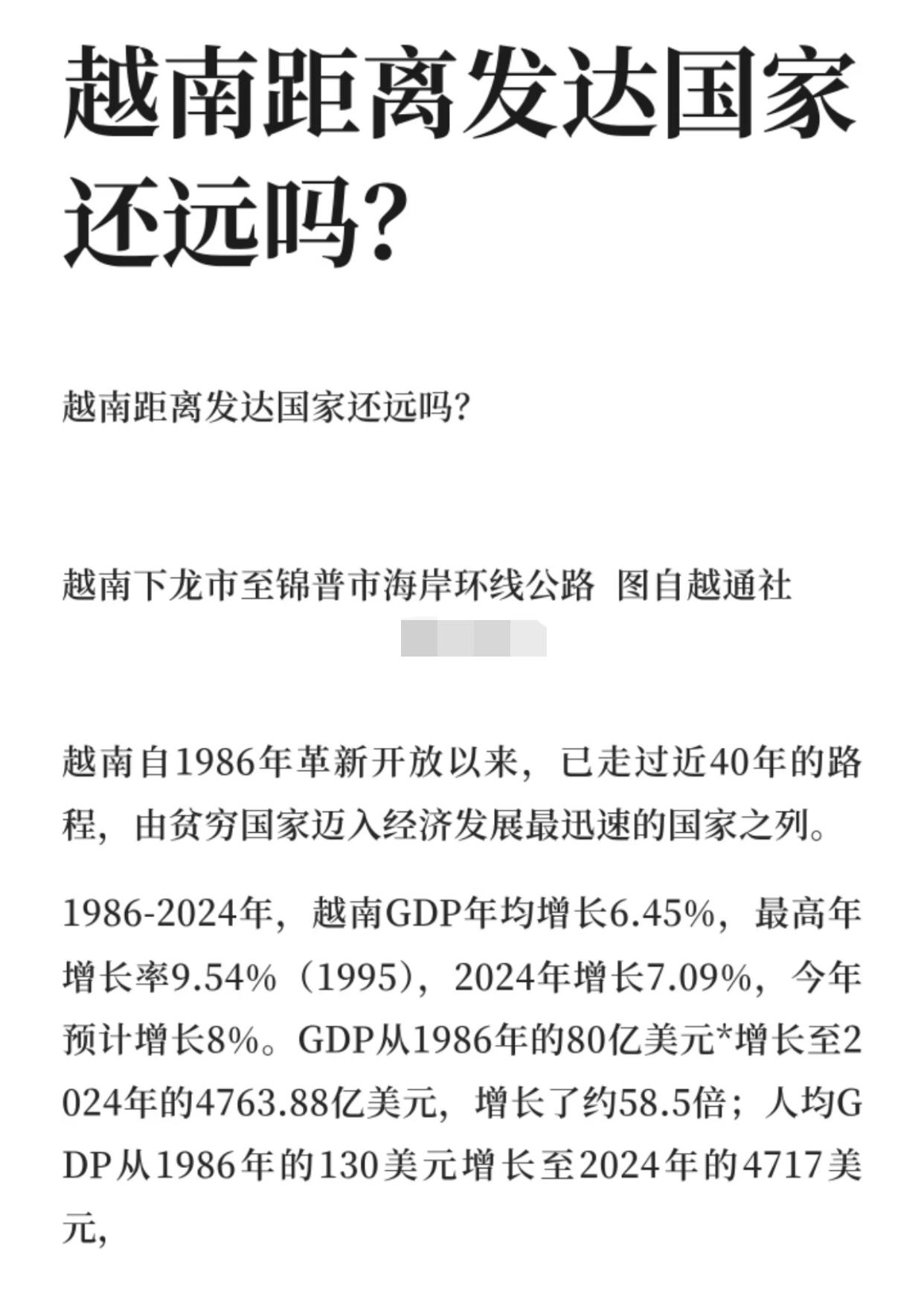 这涉及大量的资本堆积,深厚的家底要几十年的积攒。中国只要重新分配资源,形成真正内循环经济,就可以成为发达国家。而越南却没有这样厚实的家底。