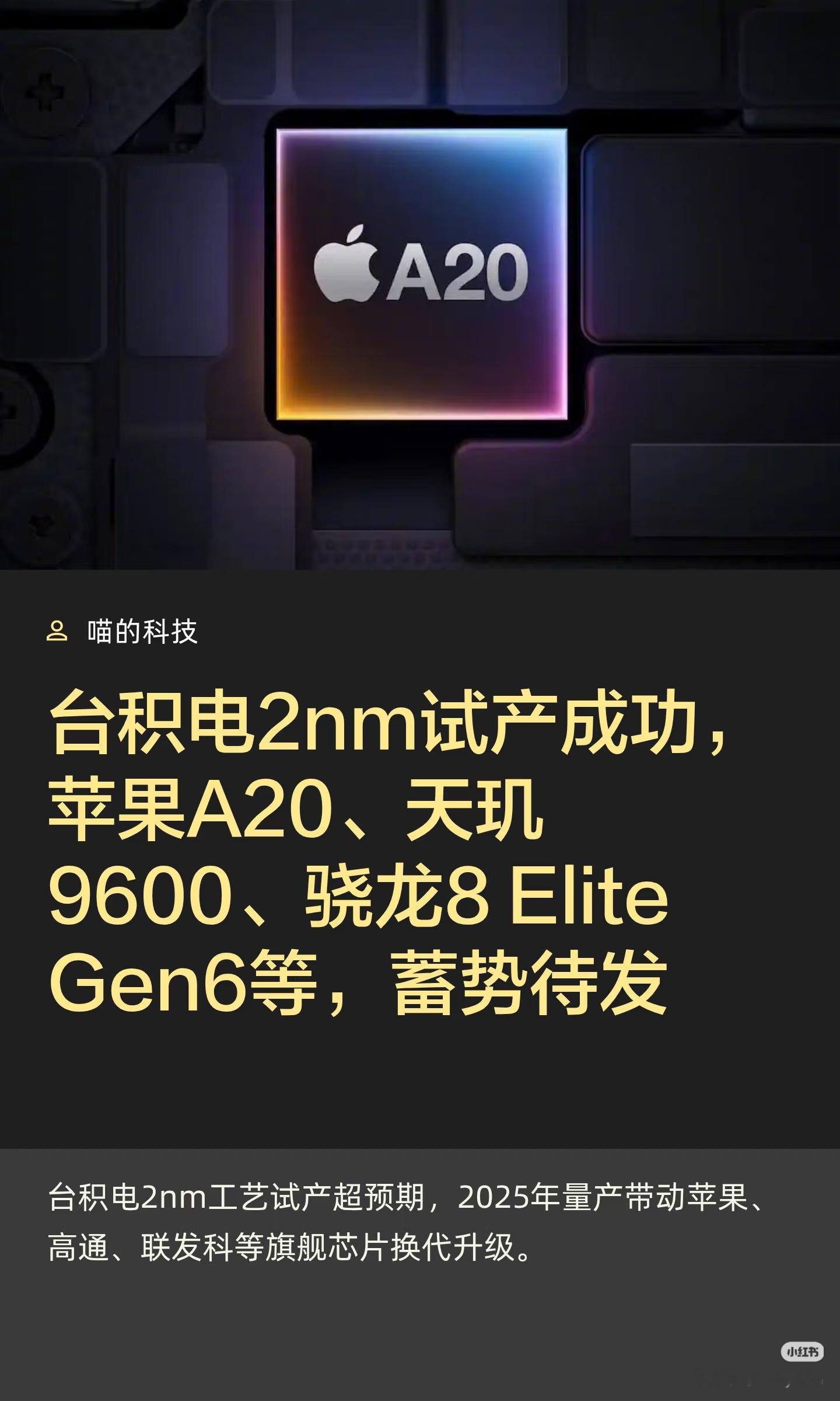 曝苹果A20Pro首发台积电2nm好好好,买买买,
