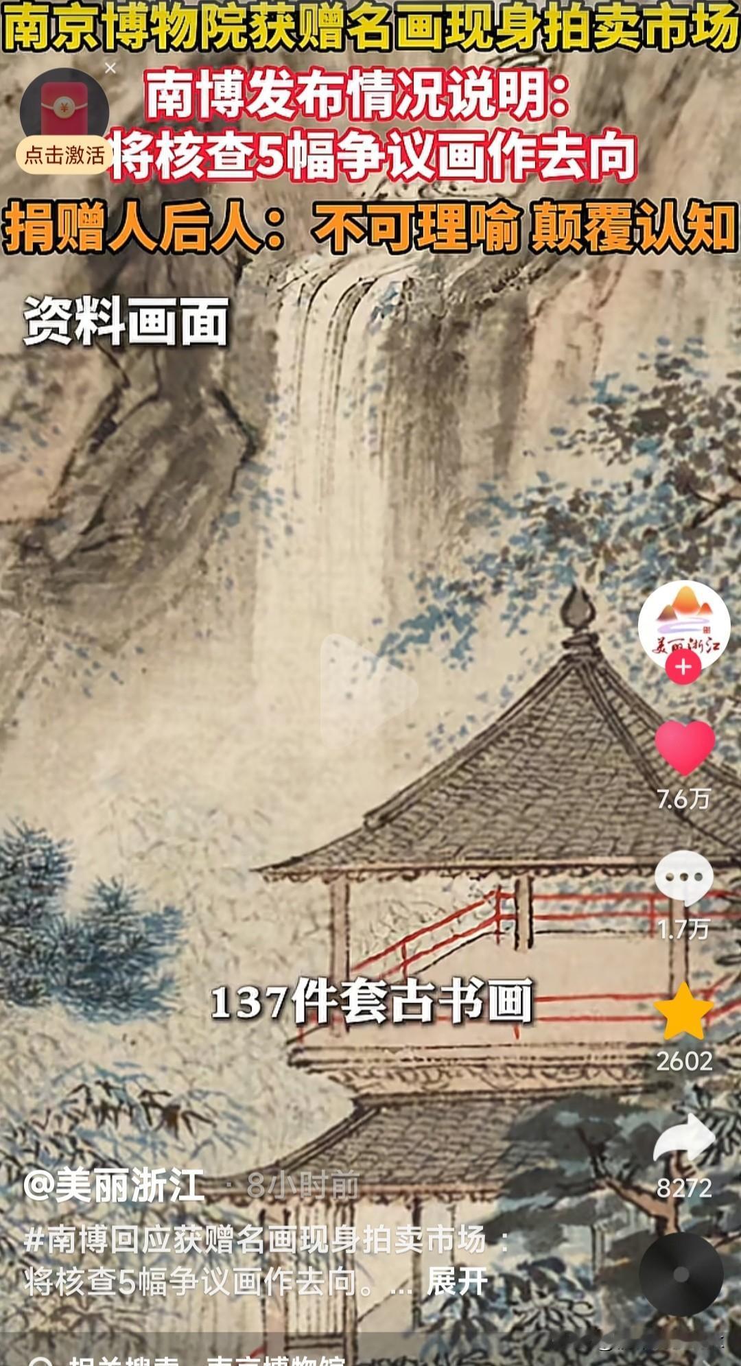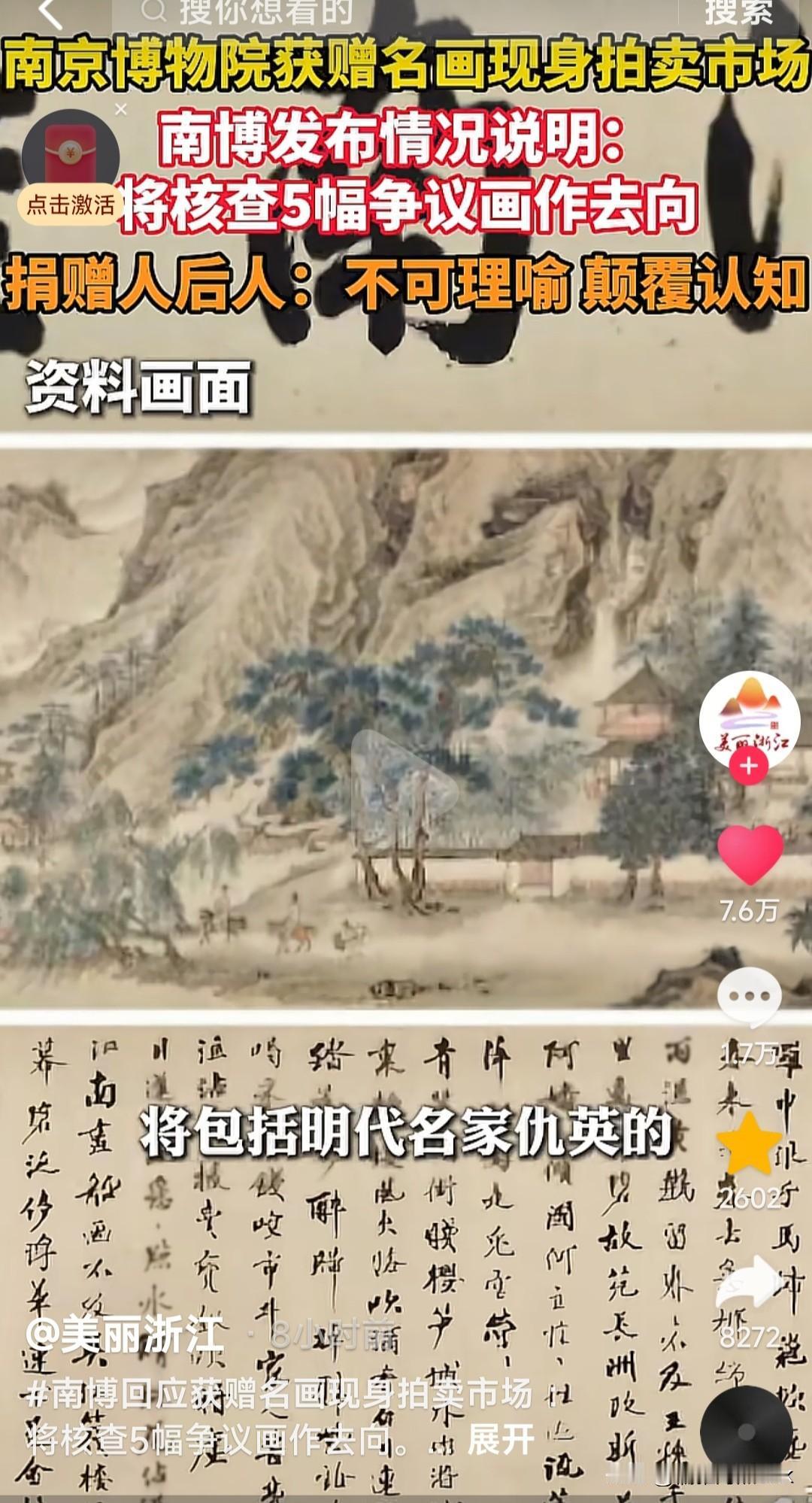 “故宫一件我一件”的含金量还在上升。66年前无偿捐赠的镇馆之宝出现在拍卖会,南京博物馆称捐赠的鉴定为赝品,捐赠者后人称,不可理喻,颠覆认识。已通过法院要求南京博物馆交代5件古画的去向。 1959年,收藏家庞莱臣的后人庞增和将包括明家仇英的《江南春》图卷在内的137件古书画,无偿捐赠给了南京博物馆。 庞莱臣的曾孙女庞叔令竟然在拍卖图录上看到了这幅镇馆之宝,估计8800万元。 12月17日,南京博物馆发布情况说明称,报道中提到的5幅争议作品,1961年经由张珩,韩慎先,谢稚柳组成的专家组鉴定为假的。 1964年,又经王敦化,徐沄秋,许莘农组成的专家组再次鉴定为假的。上世纪九十年代,南京博物馆依照藏品管理办法,将5幅假画作了处理,关于拍卖会上出现的《江南春》画卷是否为受赠画作还将进一步查证。 庞家觉得不可理喻,颠覆了认知。既然认定为伪作,为何66年不提?为什么擅自处理?所谓的“调剂”是不是流向市场的遮羞布? 庞叔令已向法院提交了强制申请,要求南京博物馆交代5件古画的去向。 这几年关于博物馆古玩字画作品被调包之事一直引争议,“故宫一件我一件”是暗讽个别人员监守自盗,内外勾结的丑陋行为。 大家记得我国最大文物被调包案吗?2002年10月28曰,香港举办一场乾隆朝国宝拍卖会,邀请在故宫博物院工作40余年的资深专家叶佩兰参加,当一尊佛像摆上拍卖台时,叶佩兰感觉似曾相识,当看到底座编号“故160801”时,为之一震,那是30年前她亲手写的。 佛像以29.5万美元成交,她没有打草惊蛇,迅速向国家文物局汇报,通过追查,发现这件文物于1972年调拨到承德文物处,打开库房,佛像竟然完好无损的在里面,一件不少,经过鉴定不仅佛像是假的,许多文物是假的,最后查出内鬼是保卫部主任李海涛,共调换259件,被判了死刑,许多文物至今都流落在海外。 博物馆是承载历史,守护文物,传承文化的地方,应该是百姓最信得过的地方,如今出现这事,不仅国家遭受损失,百姓也寒心。 南京博物馆一定要给捐赠者后人一个交代,追查文物的去向,追责内鬼,否则怎么也说不过去,成为历史的罪人。