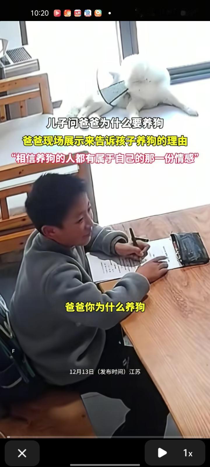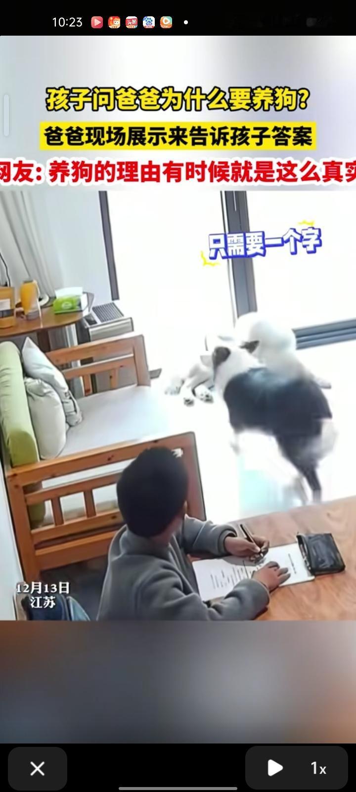 12月13日,江苏徐州。儿子问爸爸为什么要养狗,爸爸现场展示告诉儿子养狗的理由,就是叫狗子把纸拿过来。有网友称,养狗的理由就是这么真实。相信每个人心中都有自己对狗的定义,会有属于自己的那份情感。