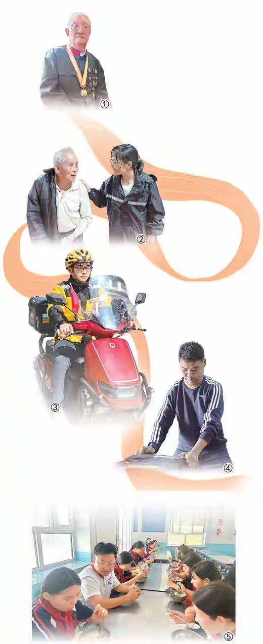 2025年,这些暖心瞬间令人难忘** 图①:张坪。本报记者 潘俊强摄 图②:刘名芳(右)。颜志雄摄 图③:黄成。刘 涛摄 图④:陆鸿。冯 轩摄 图⑤:闫泽峰(左二)。受访者供图 岁月流转,真情永恒。 2025年,我们共同经历了风雨洗礼,也迎来了无数温暖人心的瞬间。这一年,时代的脚步铿锵有力,奋进的步伐从未停歇。在阅兵式现场,抗战老兵庄严敬礼,彰显不屈的民族精神;在危难时刻,男孩遇险,外卖员挺身而出救助,彰显人间大爱;深夜山体滑坡,村干部第一时间转移村民,守护家园的责任与担当感动着每一个人。 这些感人瞬间,书写着新时代中国人的奋不顾身与无私奉献,也展现了我们共同的坚韧与温暖。让我们铭记这些温暖的故事,继续携手前行,迎接更加光明的未来。2025年这些暖心瞬间,令人难忘