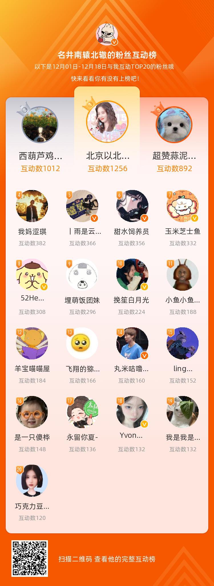 、、等,你们是我本月排名TOP20的粉丝,感谢你们的陪伴与支持,期望一直都有你