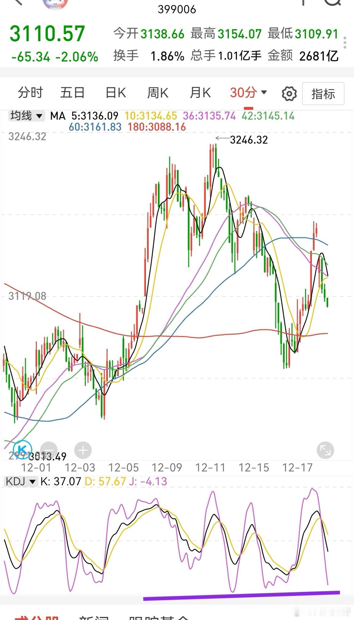 创业板今天跌差不多了,半小时kdj很快低位。再跌,就怕把个股带下来。好在快低位了。但这种扭曲走势,总是充满魔气。追涨要谨慎,大多数股票容易一阴一阳。