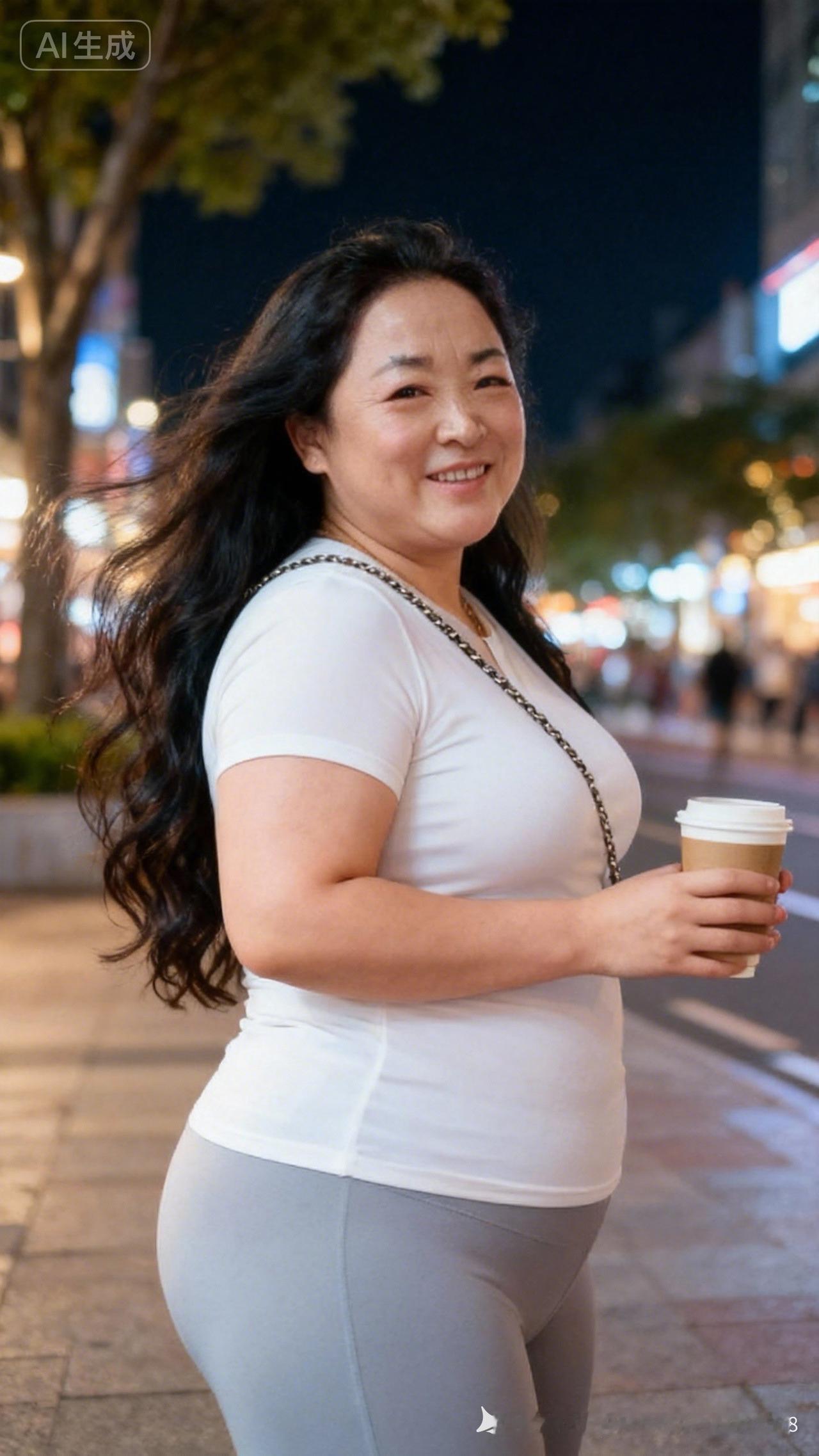 夜晚的街角,微笑的瞬间,咖啡相伴,美好生活。