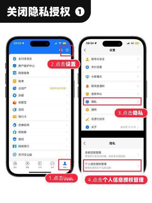 支付宝必须关闭的6个设置 第一步,打开支付宝设置,进入用户保护中心,找到个人信息授权管理,挑选不常用的服务软件,直接解除对应授权。 第二步,打开收付款,开启付款码的隐私保护。 第三步,打开通用设置,进入首页管理,找到推荐卡片,关闭广告推送。 第四步,打开账户与安全,进入登录方式设置,点击登录保护,确认已开启。第五步,打开安全中心,点击安全锁,开启三大保护。 第六步,打开支付设置,针对自动续费、先用后付、免密支付这些项目,将不需要的服务全部关闭。 上述步骤你都设置好了吗?保护好个人账户就是在守护我们的财产安全。