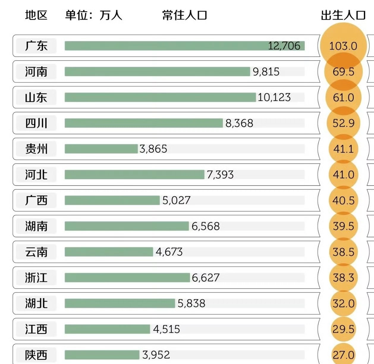 最能生娃省份排名来了在出生人口最多的三个省份(广东、山东、河南),和出生率最高的三个省份(西藏、宁夏、贵州),都和“山”有关系。广东虽然临海,但其总体地形仍是以山地和丘陵为主,古称岭南。山东这个省份直接就带了个“山”字,拥有全国最有贵气的一座“泰山”,这大概也是山东公务员最多的玄学原因。河南的北、西、南三面分别被著名的太行山、秦岭、大别山包裹,可以说是众山环抱。而出生率最高的省份是西藏,位于地势最高的青藏高原。其后的宁夏、贵州,也都是高山高原。
