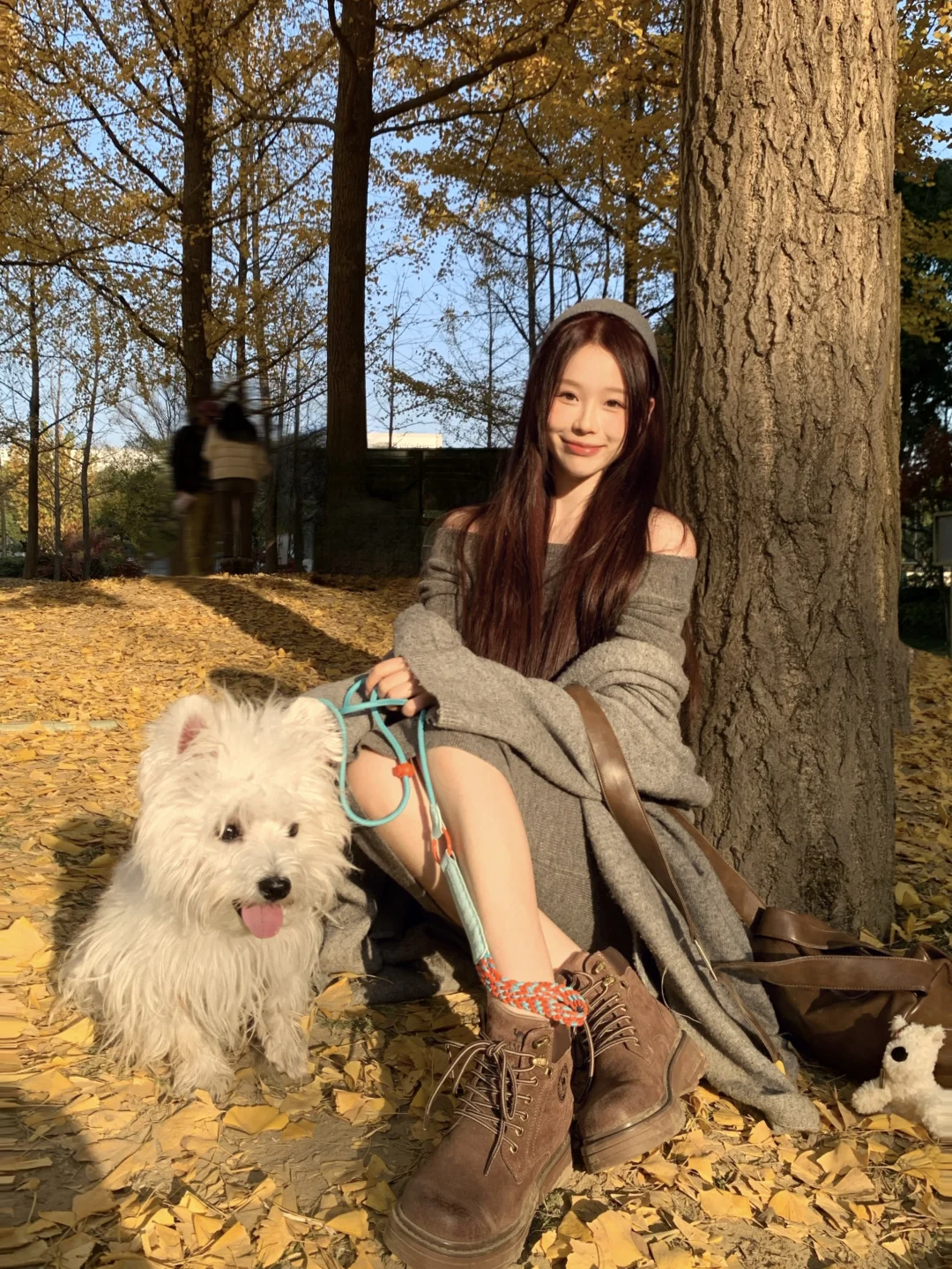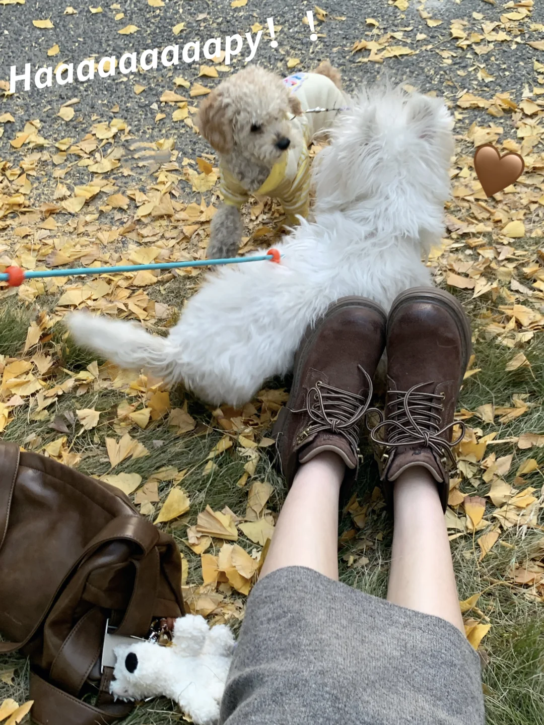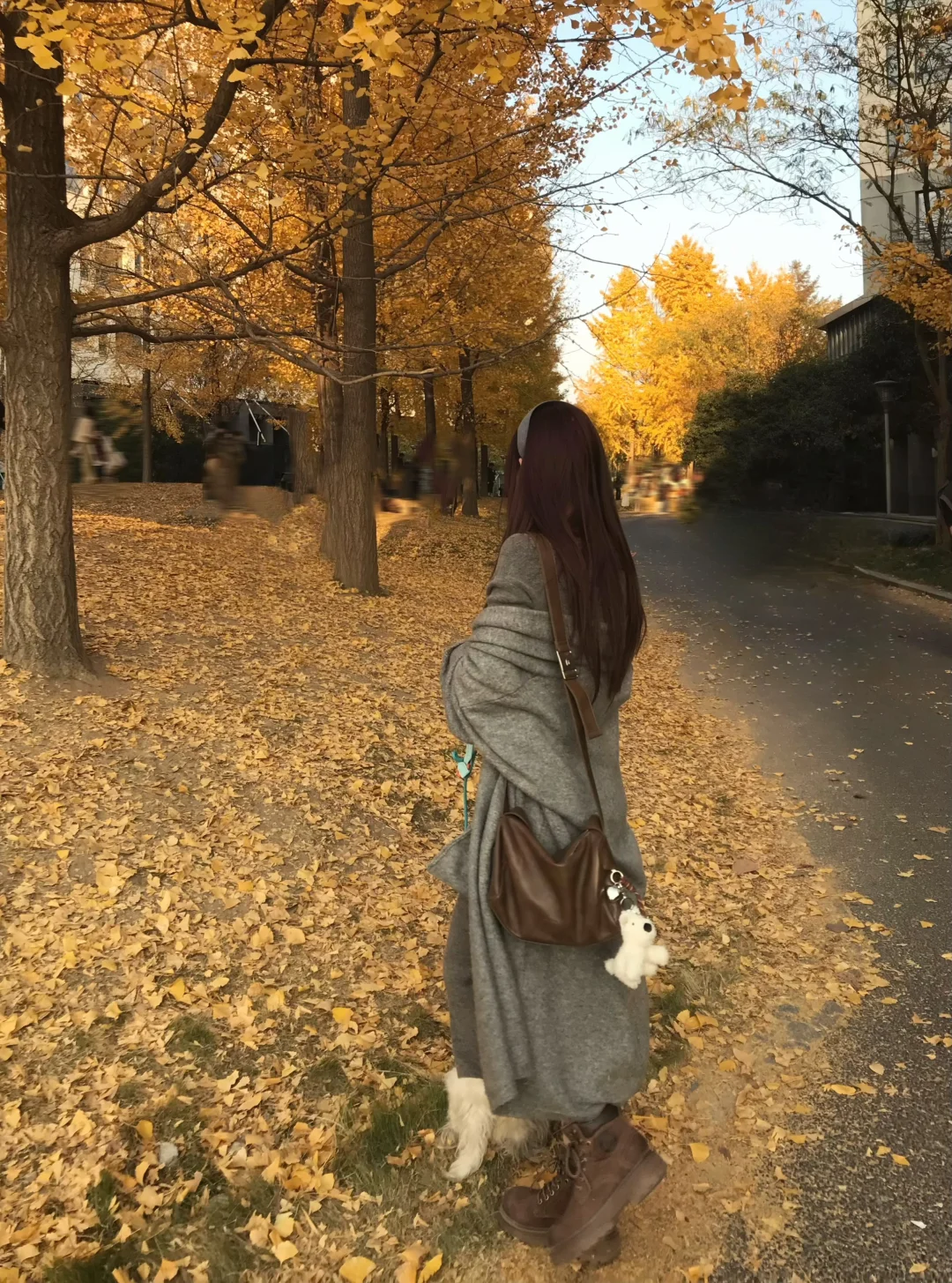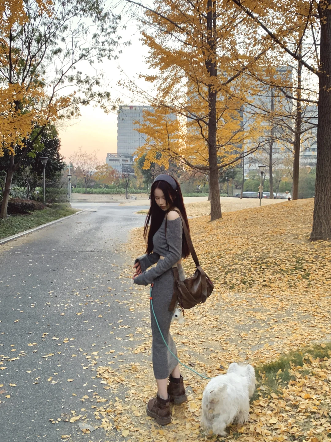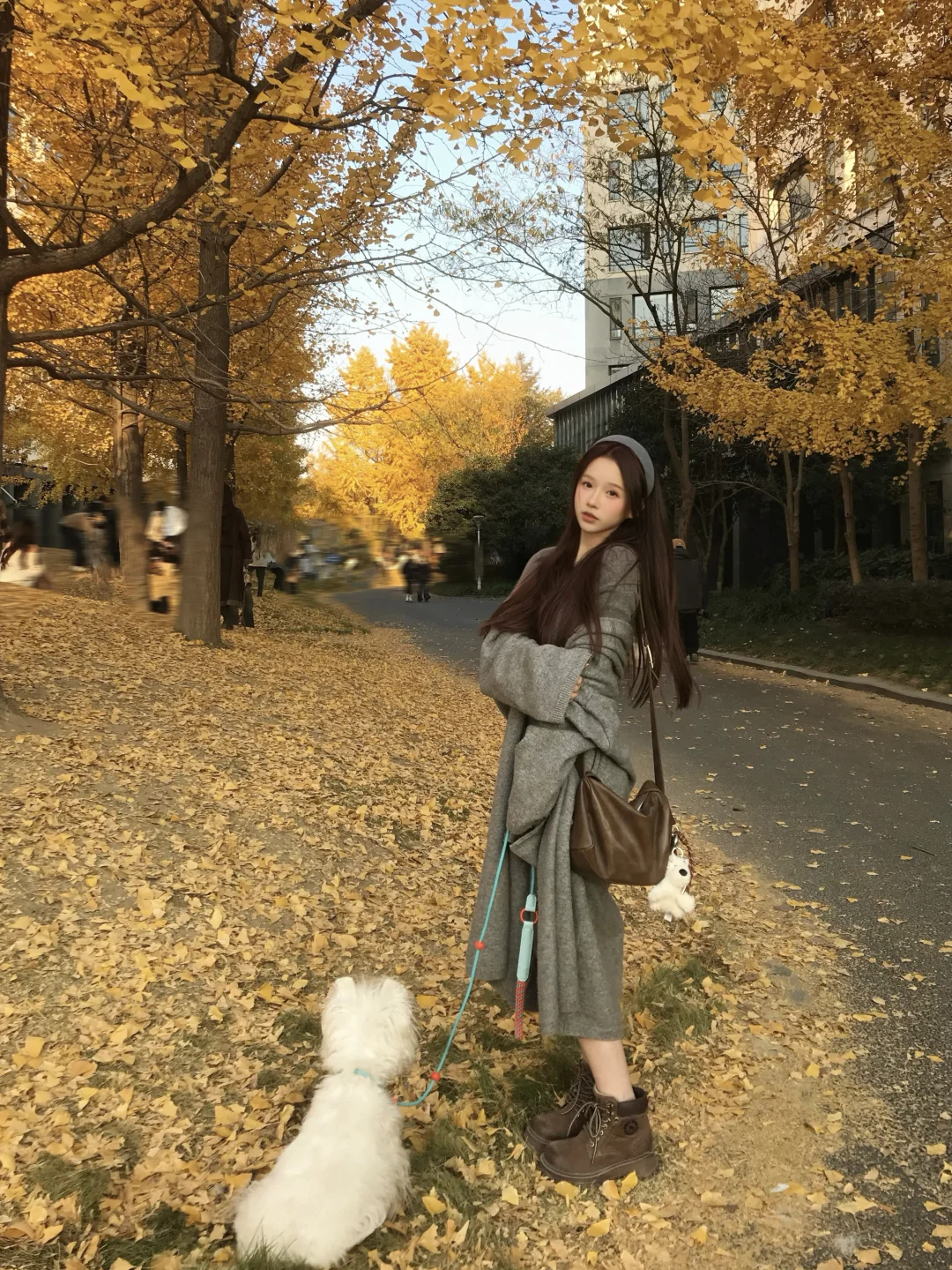 去拍银杏啦 在秋天和小狗🐩的记忆又多了一段 ootd有点姐感? “是吧 小狗”