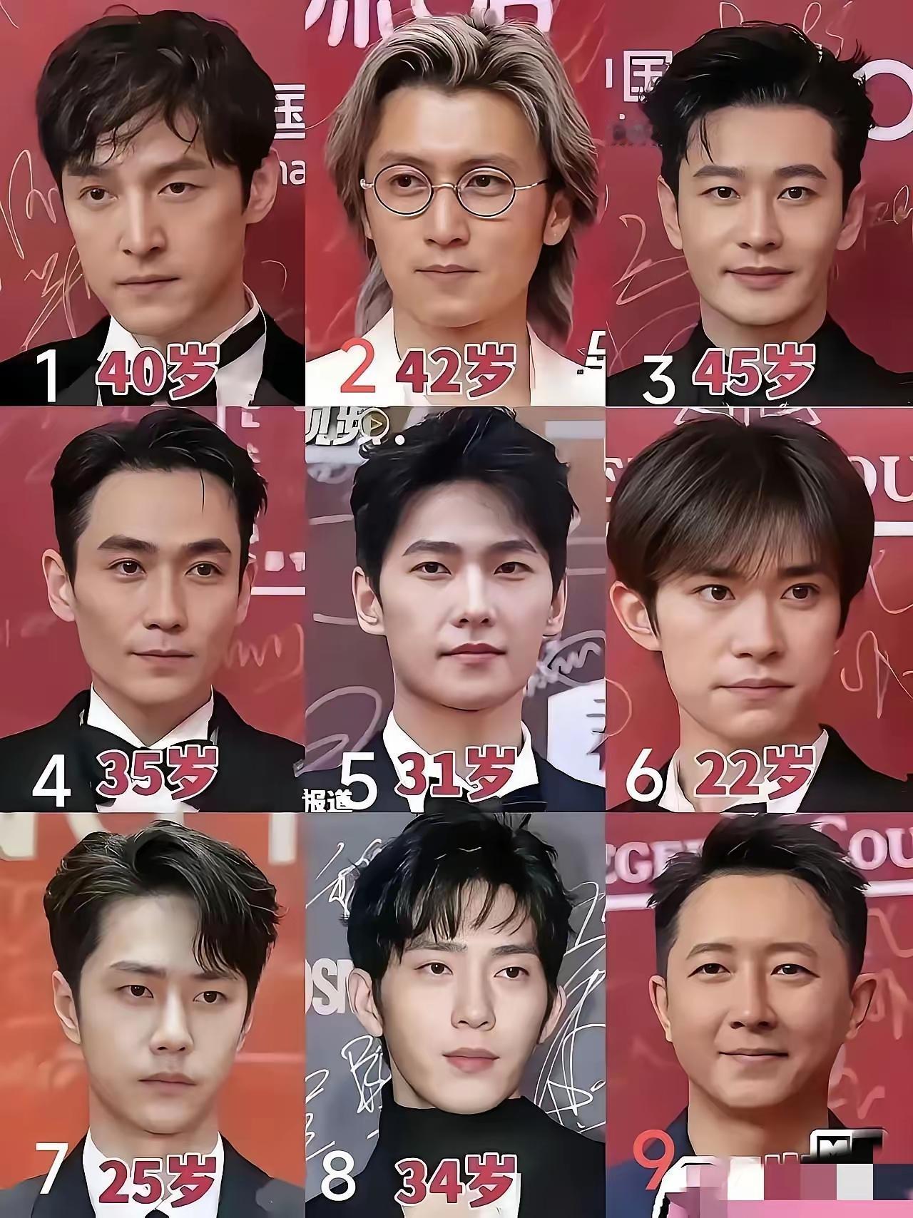 第一眼还是觉得黄晓明最帅,九位不同年龄的帅哥同框,还是觉得黄晓明最符合帅哥的特质,标准的国字脸,五官立体有型,天庭饱满,地阁方圆,浓眉大眼,鼻梁高挺,最具东方男人的骨相皮相,是哪种英俊帅气,硬朗阳刚性的帅哥代表,当然萝卜青菜各有所爱,你的审美也许不一样,你第一眼觉得谁最帅呢?