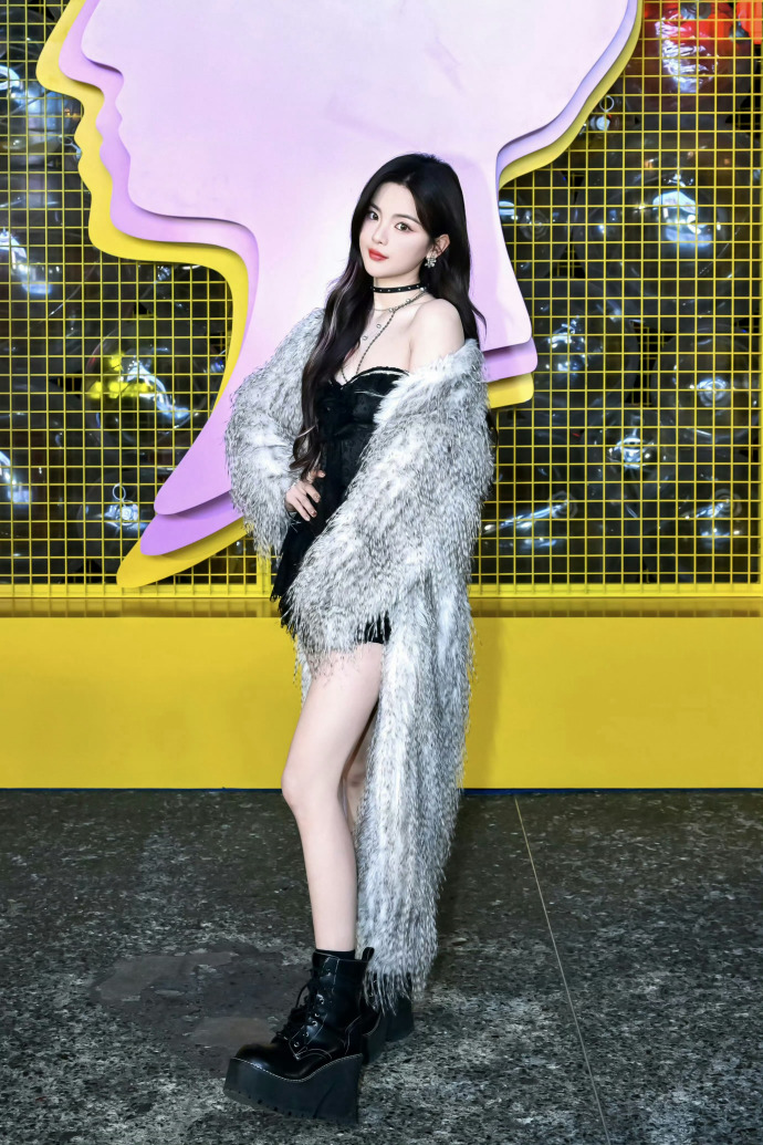 吴艳妮在成都穿着短裤大腿看起来很粗壮,表情自信又张扬