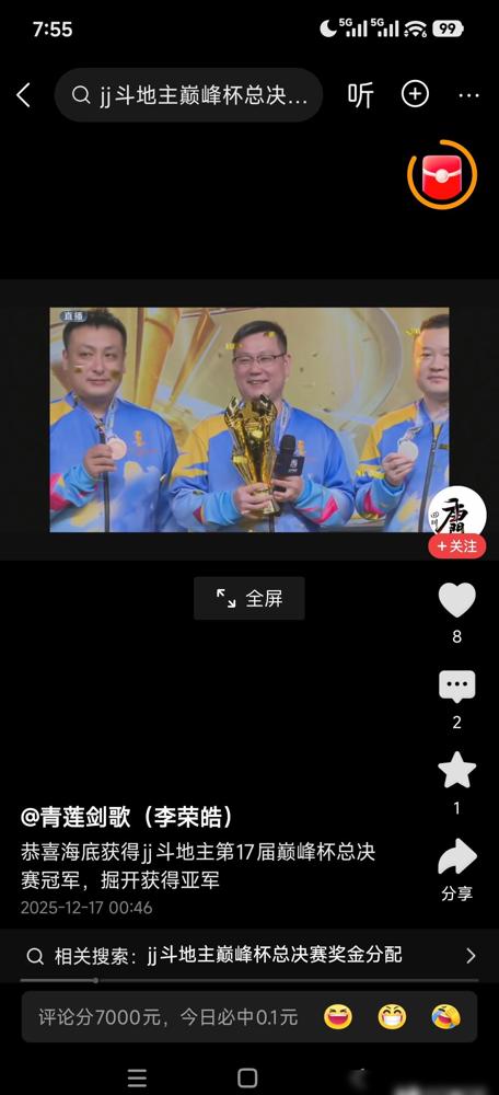 三连冠背后,是“千年老二”坐穿奖台的残酷。 JJ斗地主个人赛,努力在运气面前经常失灵。 JJ斗地主个人赛的牌桌就像个微缩人间,努力在运气面前,有时候真像个笑话。 你眼睁睁看着宇峰,那个把牌算得透透的男人,大脑像台精密仪器,可牌库偏偏不给他发好牌。 你手里攥着一把七零八碎的小牌,正琢磨着怎么苟活,对面已经甩出四个二带俩王,那种无力感,能瞬间把人的斗志浇灭。 这哪儿是技术不如人? 分明是系统那只无形的手,在强行给比赛加戏,注入让人咬牙切齿的“偶然性”。 但海底偏偏不信这个邪。 他卫冕的路,不是等着老天爷赏饭吃的顺风局。 最吓人的是,当运气完全倒向对手掘开那边,眼瞅着就要崩盘的时刻,他硬是靠更深一层的算计,把看似注定的败局一点点掰了回来。 这就不是简单的打牌了,这是一场心理和智力的碾压。 顶尖高手和普通好手的区别,在这一刻赤裸裸地摊开,他们不是命运的宠儿,而是烂牌的驾驭者。 你还在抱怨手气差,人家已经在脑子里推演了十几种用烂牌翻盘的路径。 所以别再嘟囔“为什么赢的总是他”这种傻话了。 竞技场剥开所有花里胡哨的包装,露出的内核残酷又公平,运气这东西,来无影去无踪,但绝对实力就像定海神针。 它是无数个深夜对着一副副牌冥思苦想的沉淀,是输了成千上万局后刻进骨子里的肌肉记忆。 实力这东西,不会陪你演戏,它只会在概率的潮水哗啦啦退去时,让那个准备最充分的人,稳稳地坐在王座上,连裤脚都没打湿。 看看其他领域,哪个不是这样? NBA赛场上,最后绝杀球交给谁? 一定是那个每天凌晨四点就开始练球,投丢了无数次关键球的人。 商海沉浮,风口来了猪都能飞,但风停了,摔死的也是猪,能继续翱翔的是那些早就练硬了翅膀的雄鹰。 指望运气发家,就像指望买彩票改变人生,梦醒时分才发觉枕头都是湿的。 真正的强者,把运气视为锦上添花的那点“锦”,而自己,早已织就了最结实的“布”。 记住海底卫冕的这个夜晚吧。 它像一记响亮的耳光,打在所有想靠侥幸成功的人脸上。 赢,哪里是轻松的事? 那是用提前透支的汗水和脑细胞,去跟老天爷赌命,是真正的“胜天半子”。 输,也未必是世界末日,只要拼尽了全力,就能坦然拍拍胸口,来一句“我与自己和解了”。 这世上最可怕的,不是你运气差,而是当运气降临时,你发现自己根本接不住。 王座,从来只为那些在黑暗中依然默默磨刀的人准备。