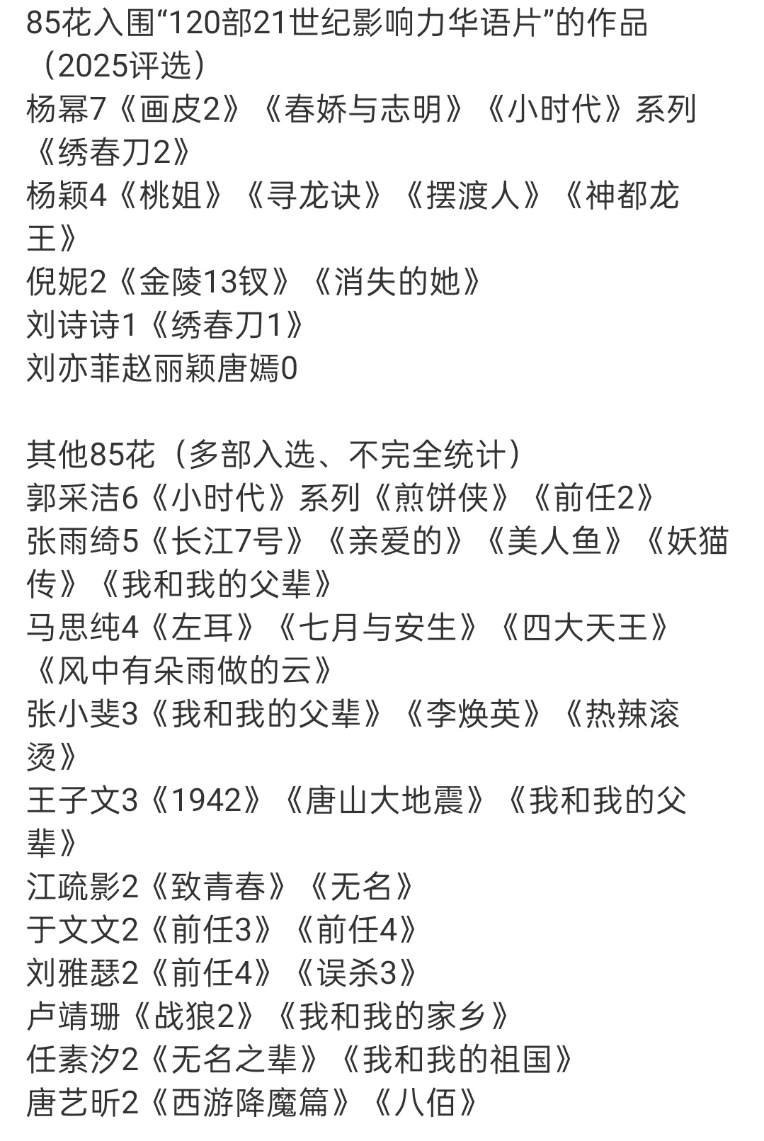21世纪最具影响力的华语电影杨幂 杨幂7部电影作品入围,又是85花第一🏆《小时代》系列、《画皮2》、《绣春刀2》、《春娇与志明》。 投票指路👉21世纪最具影响力的华语电影