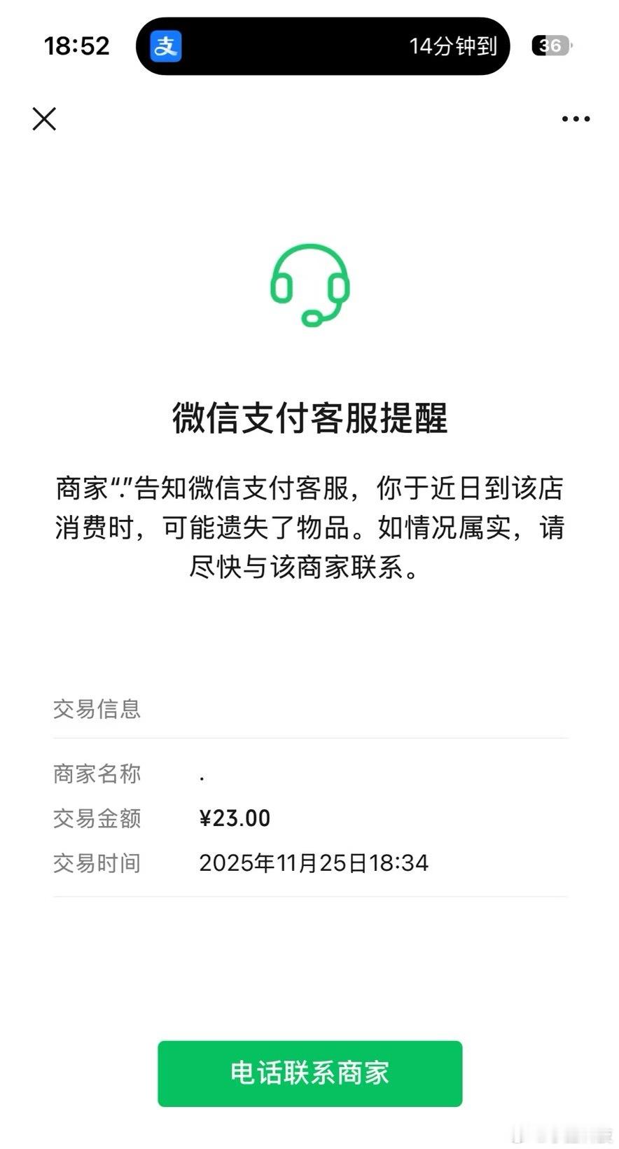 第一次知道微信支付还有这功能上次收到商家提示我可能遗失物品,打电话一问,买的鸭肉没付钱…