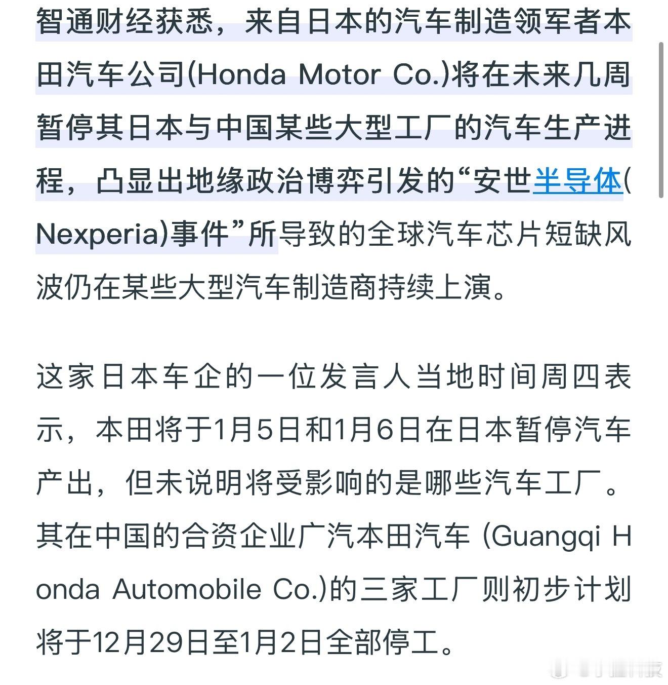 本田中国工厂将停产这很正常,AS半导体出不了货,其他半导体公司的产品认证需要很长
