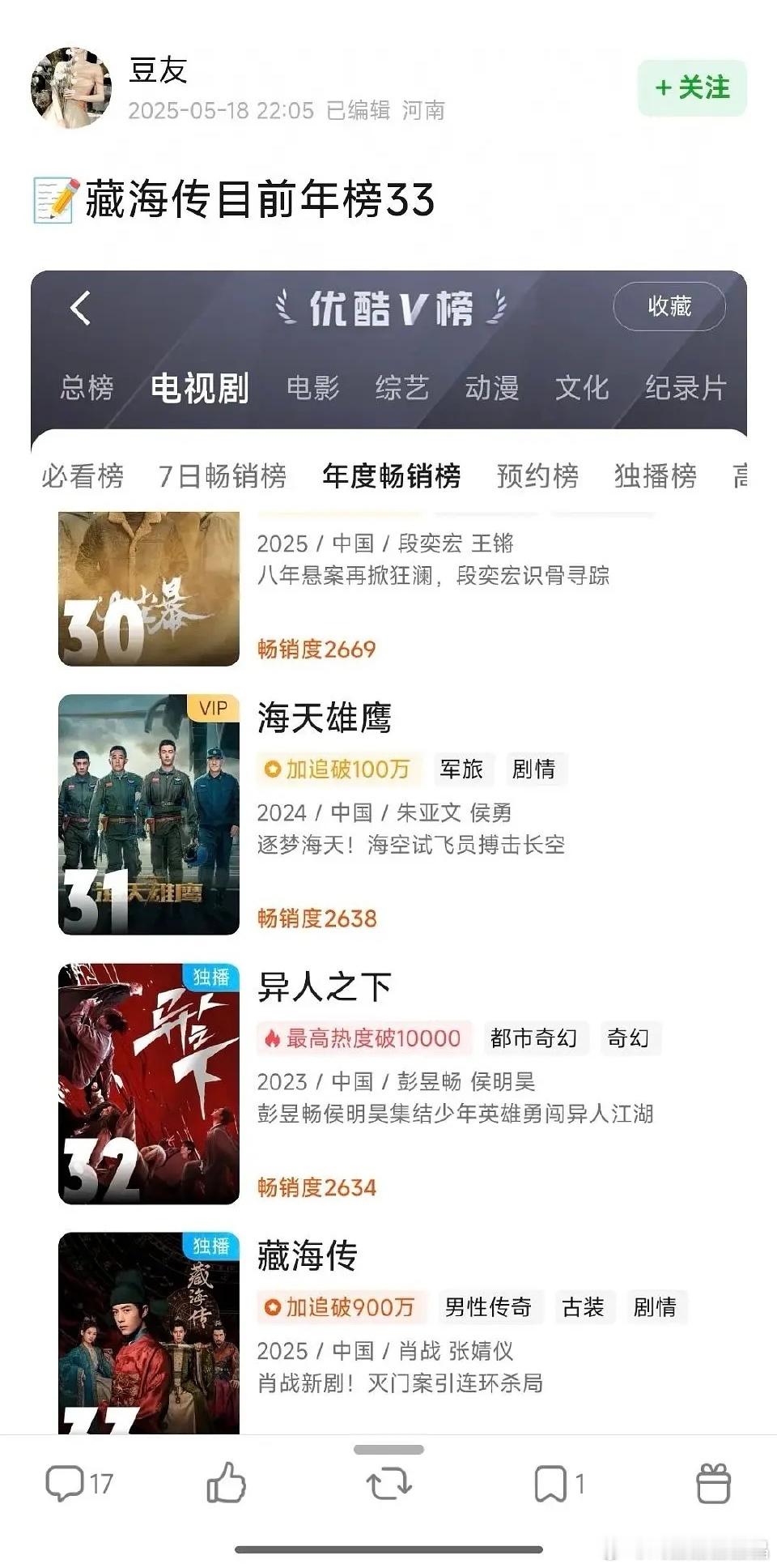 七点半开播, 按ie说法藏海传在改版前不到三个小时进年榜 ,藏海传更牛逼了!