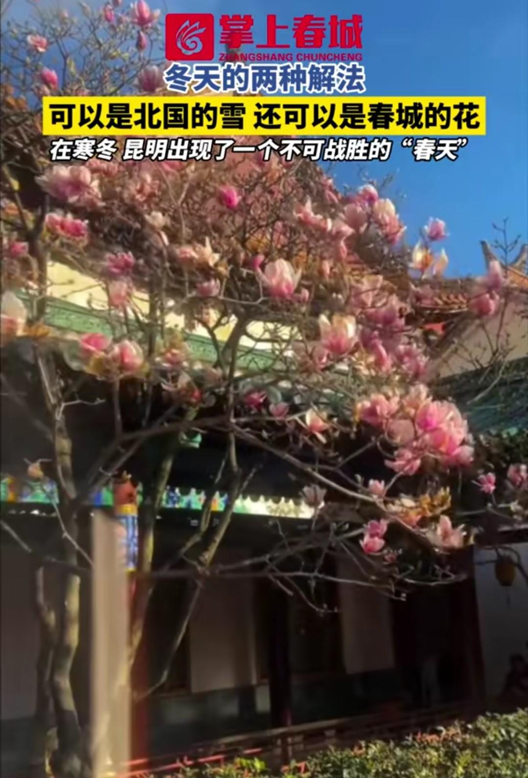 这还是冬天吗? 看这到处盛开的花,这是昆明藏在冬天里不可战胜的春天啊。 昆明的冬天,暖和的时候很暖和,冷起来的时候也很冷,不过总体上来说,还是暖和的天气更多,喜欢昆明的冬天,舒适、自在,是最好的过冬胜地。