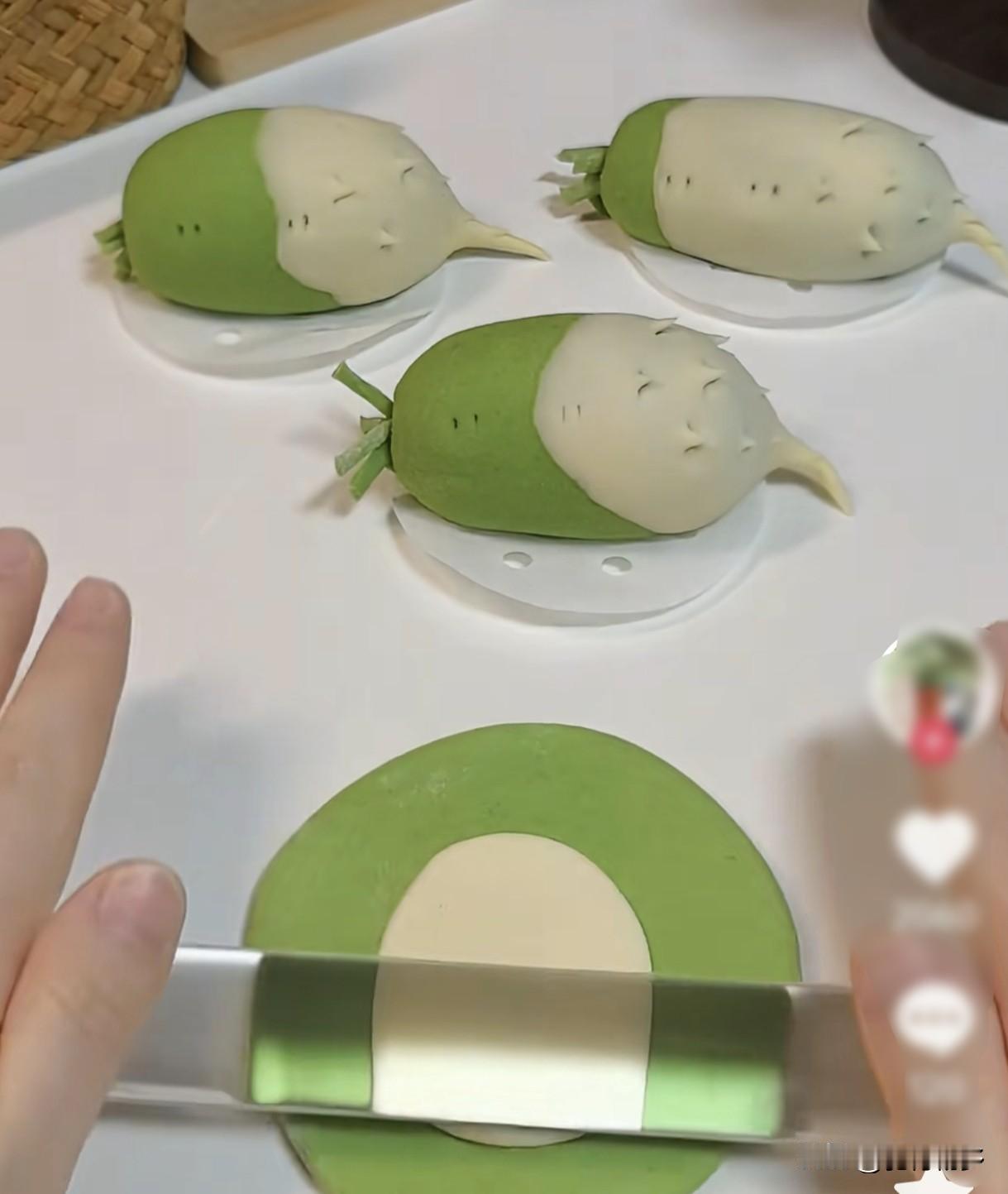 陕西关中女人心灵手巧做一手好面食!看咸阳女乡党做的的萝卜形状馍做得多好,惟妙惟肖的。 谁娶了这媳妇有口福了!