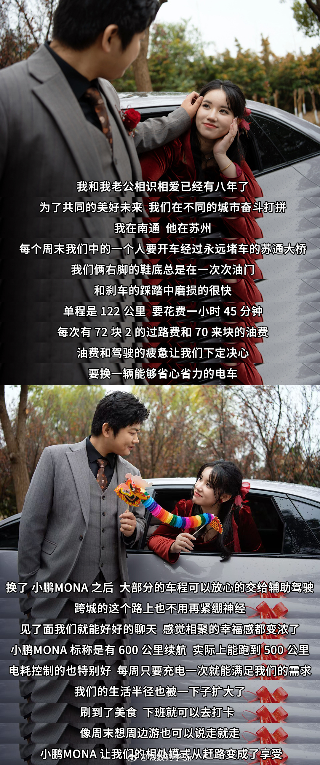 异地8年成婚何小鹏车友齐祝福有MONA终成眷属的具象化!小鹏MONA车主与男友异地8年终于成婚,此前常年跨城122公里相聚,不堪油车带来的驾驶疲惫感及高昂油费,于今年8月换购了一台小鹏MONA M03 600 Max,其优秀的AI辅助驾驶与电耗控制让他们的相见多了许多幸福感!筹备婚礼时,她发帖招募车友组建车队送亲,鹏友们响应热烈,短短3天便集结8辆同款座驾,为这场爱情长跑送上特别祝福!小鹏汽车董事长CEO何小鹏也转发其动态,为这对新人送上祝福👏小鹏MONA婚车队